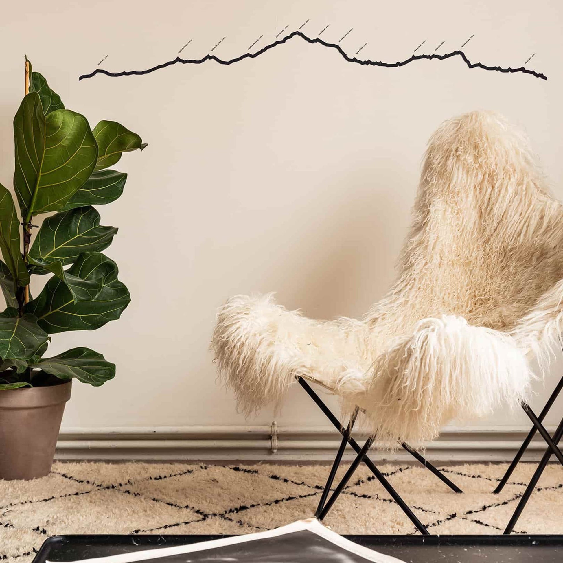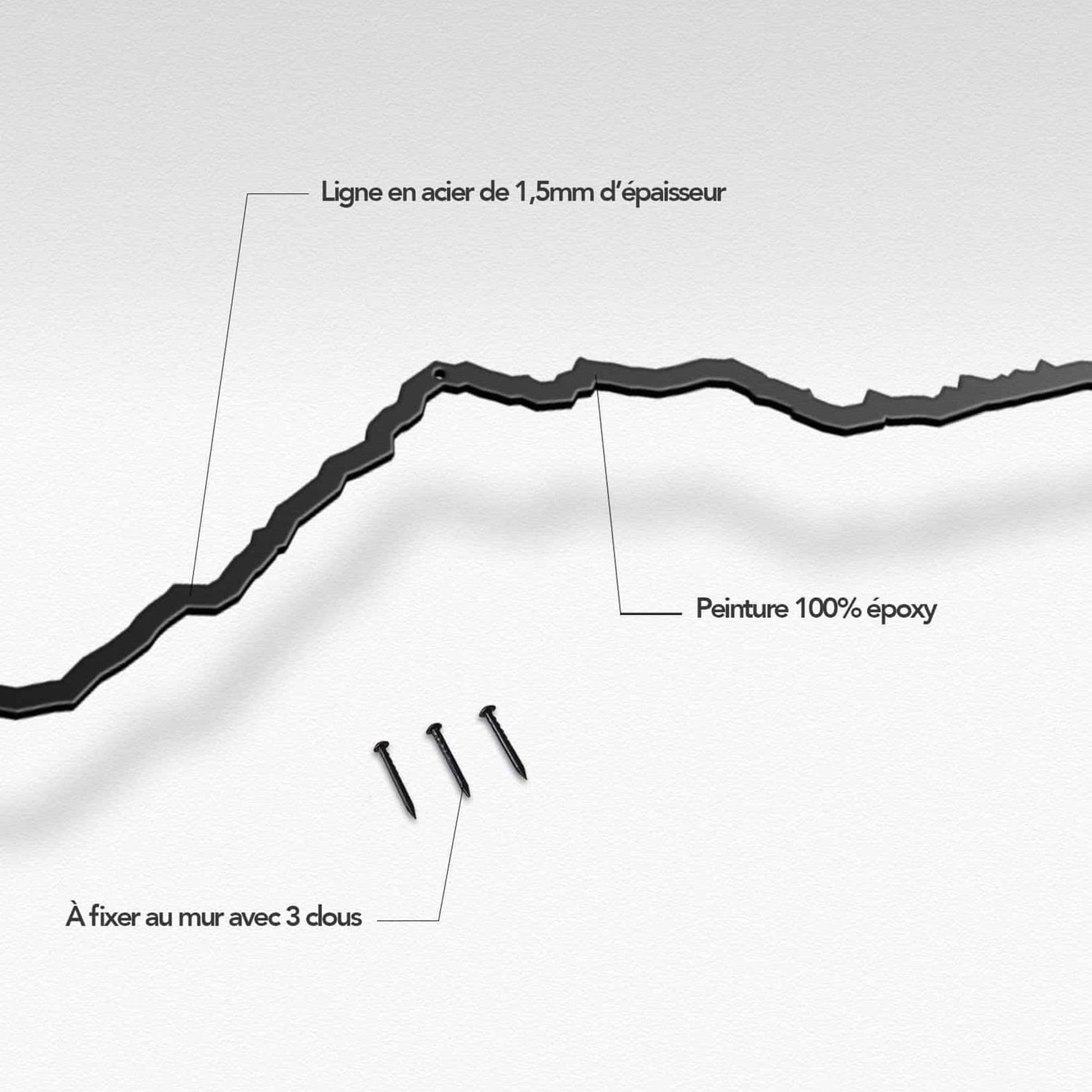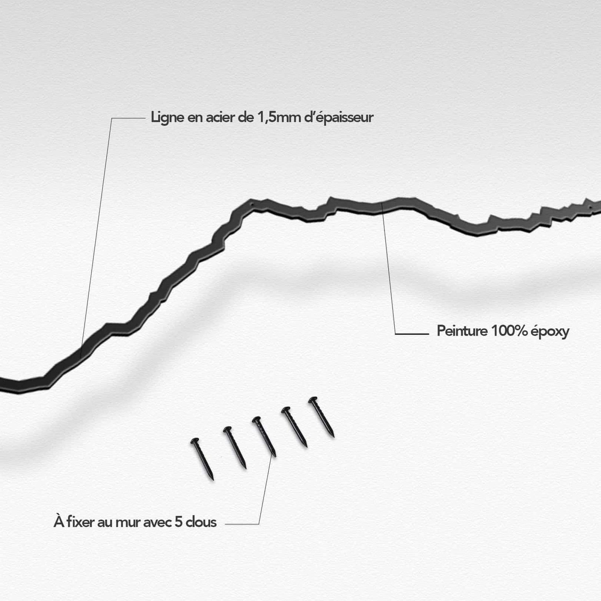 The Mont Blanc Line art piece, available in 50 cm and 125 cm sizes, offers a stunning silhouette of the highest peak in the Alps. This elegant depiction brings the majestic beauty of Mont Blanc into your space, perfect for mountain enthusiasts and those who appreciate the serene allure of nature.