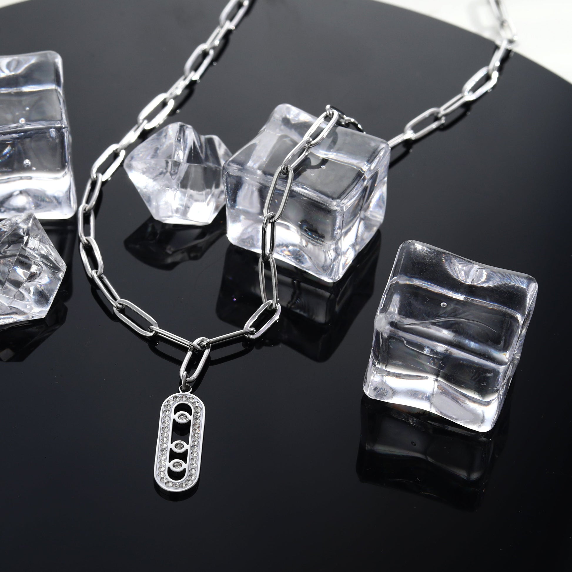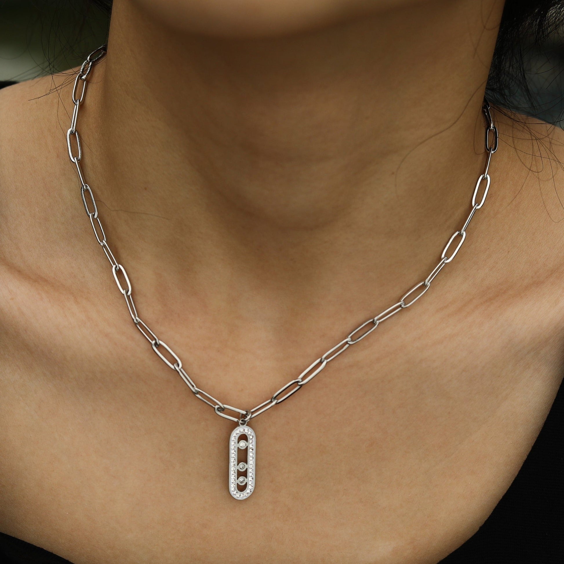 MORNA Paper Clip Chain with Zirconia Accented Geometric Pendant Silver