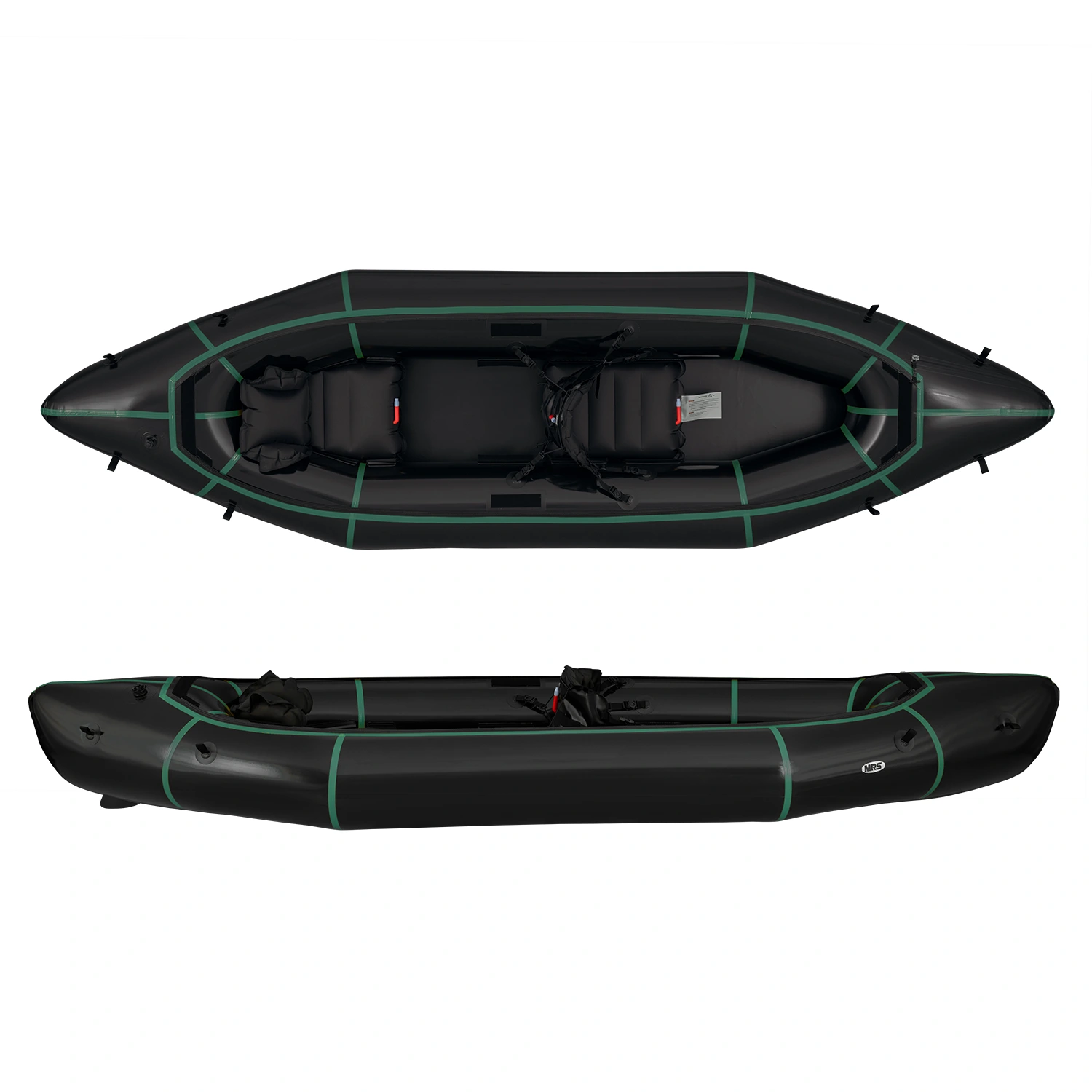 Includes: 2 seats, 2 backrests (quick release backrest for the front), inflation bag, repair patches, straps, D type spray skirt, skeg, user's manual