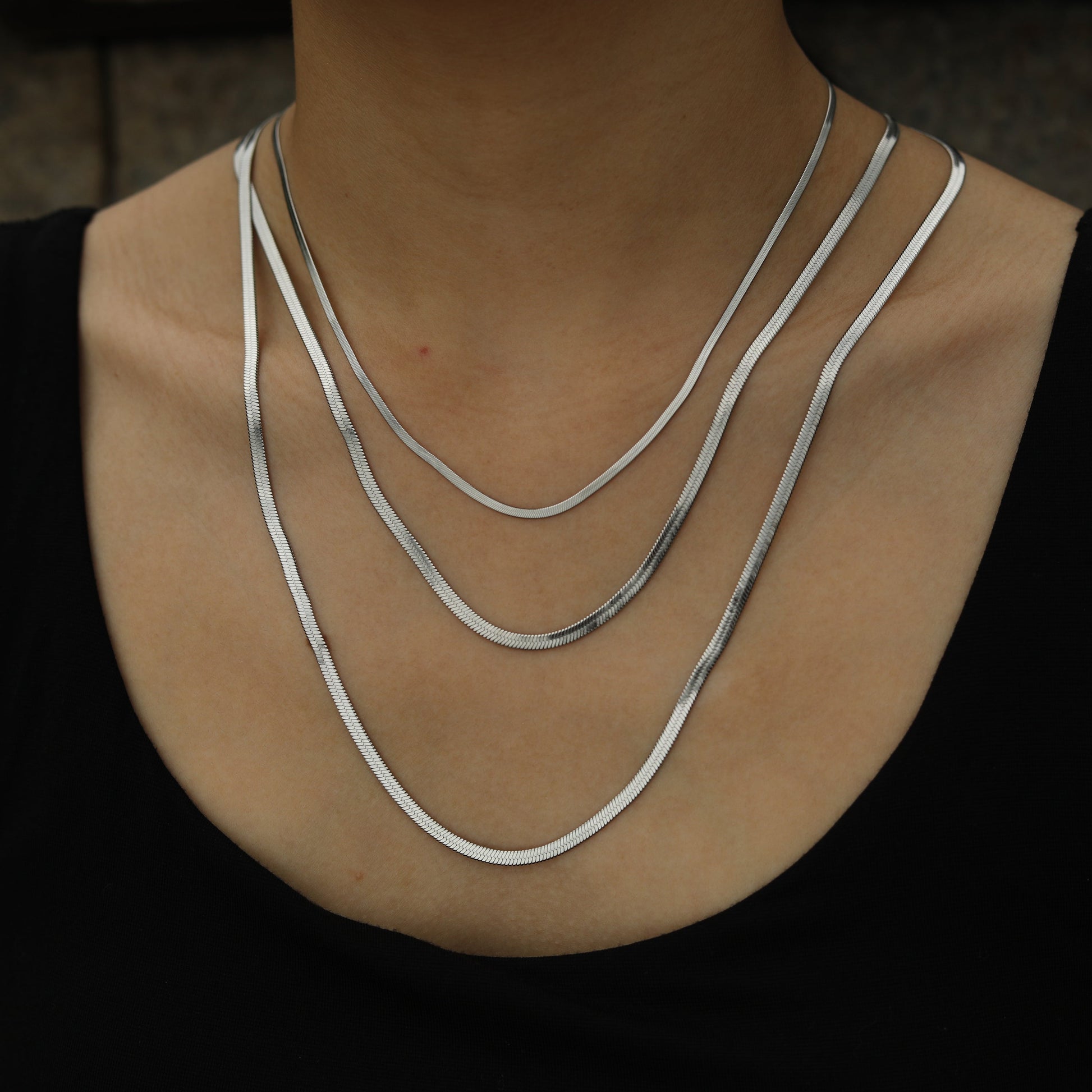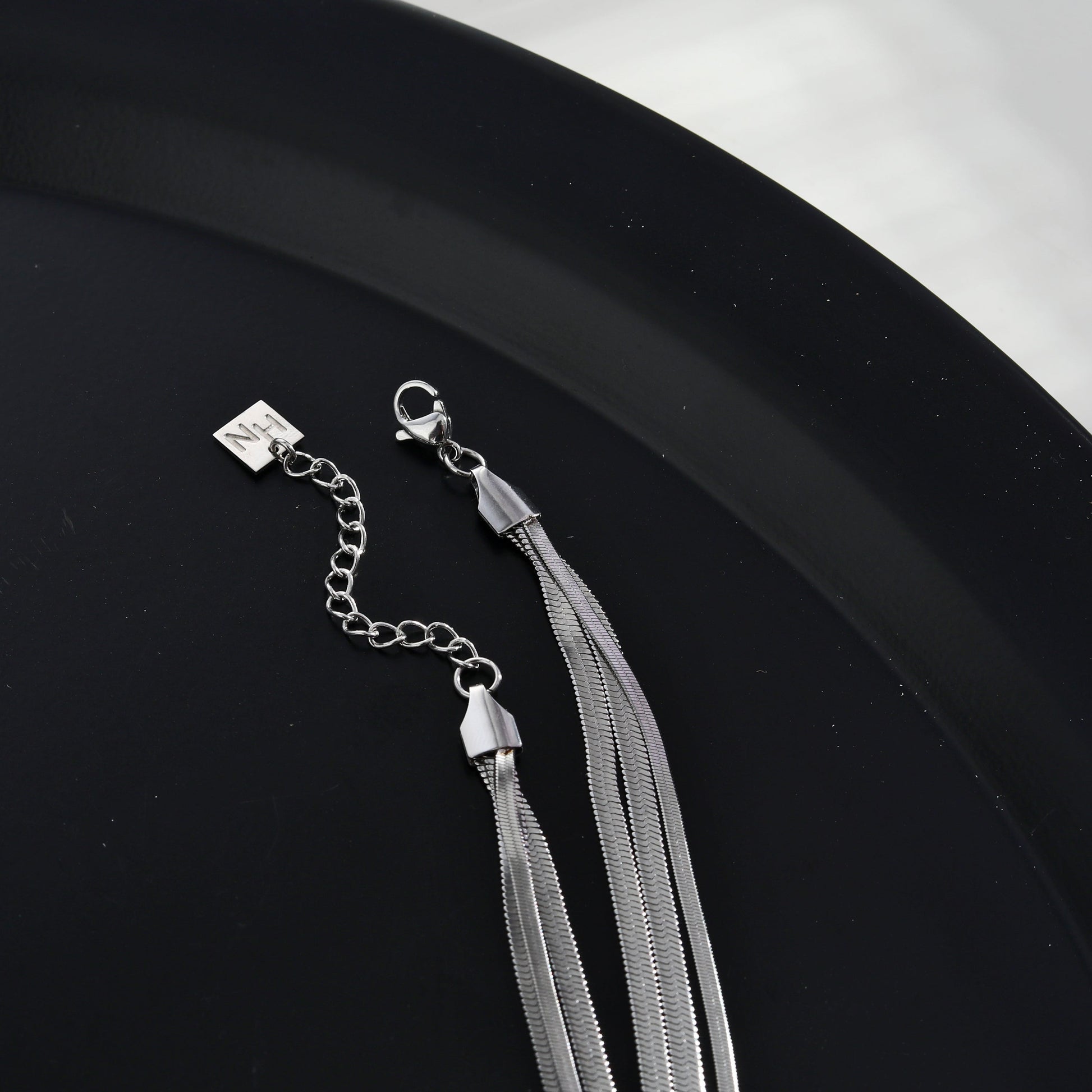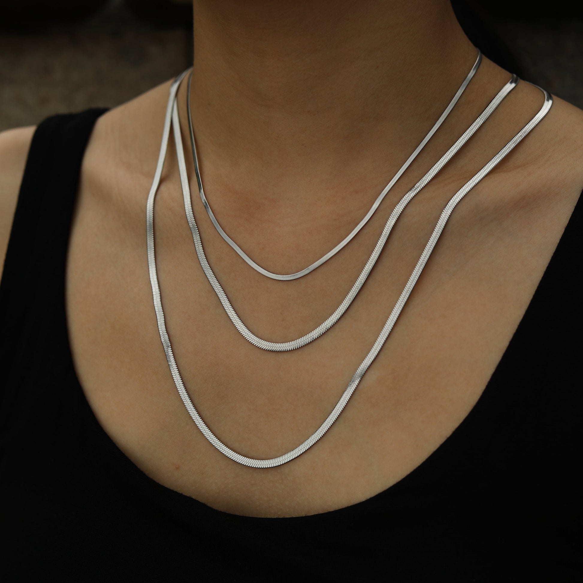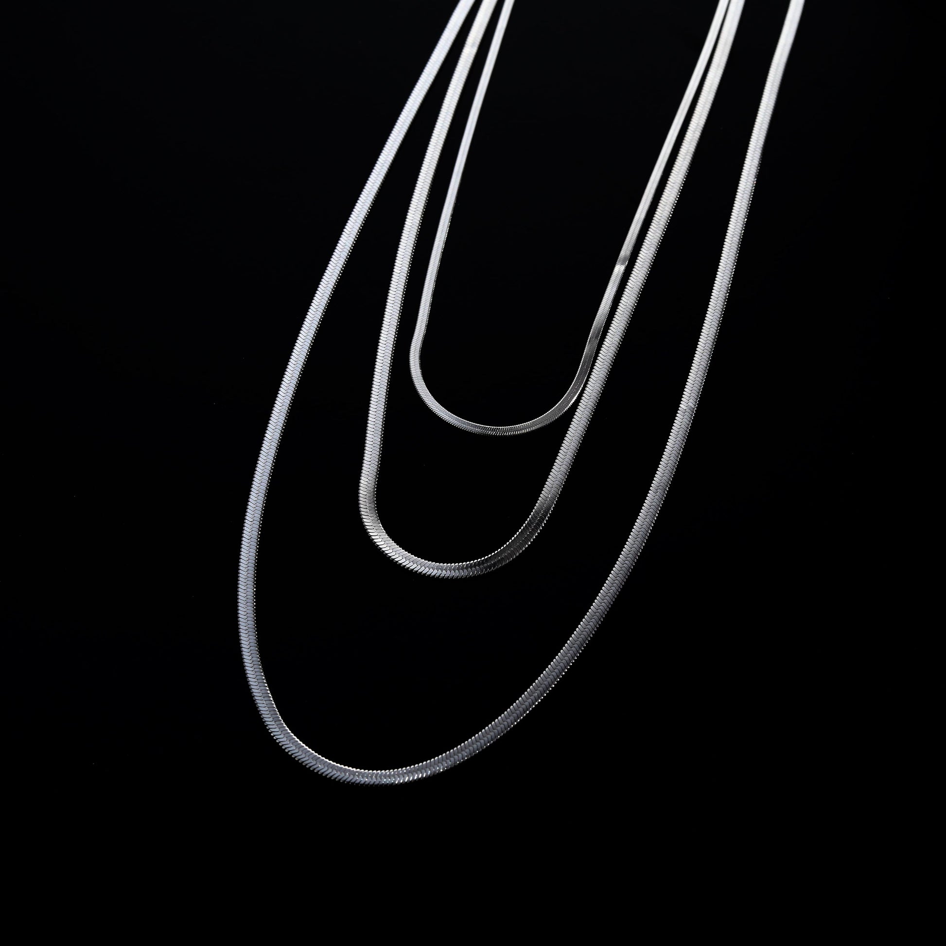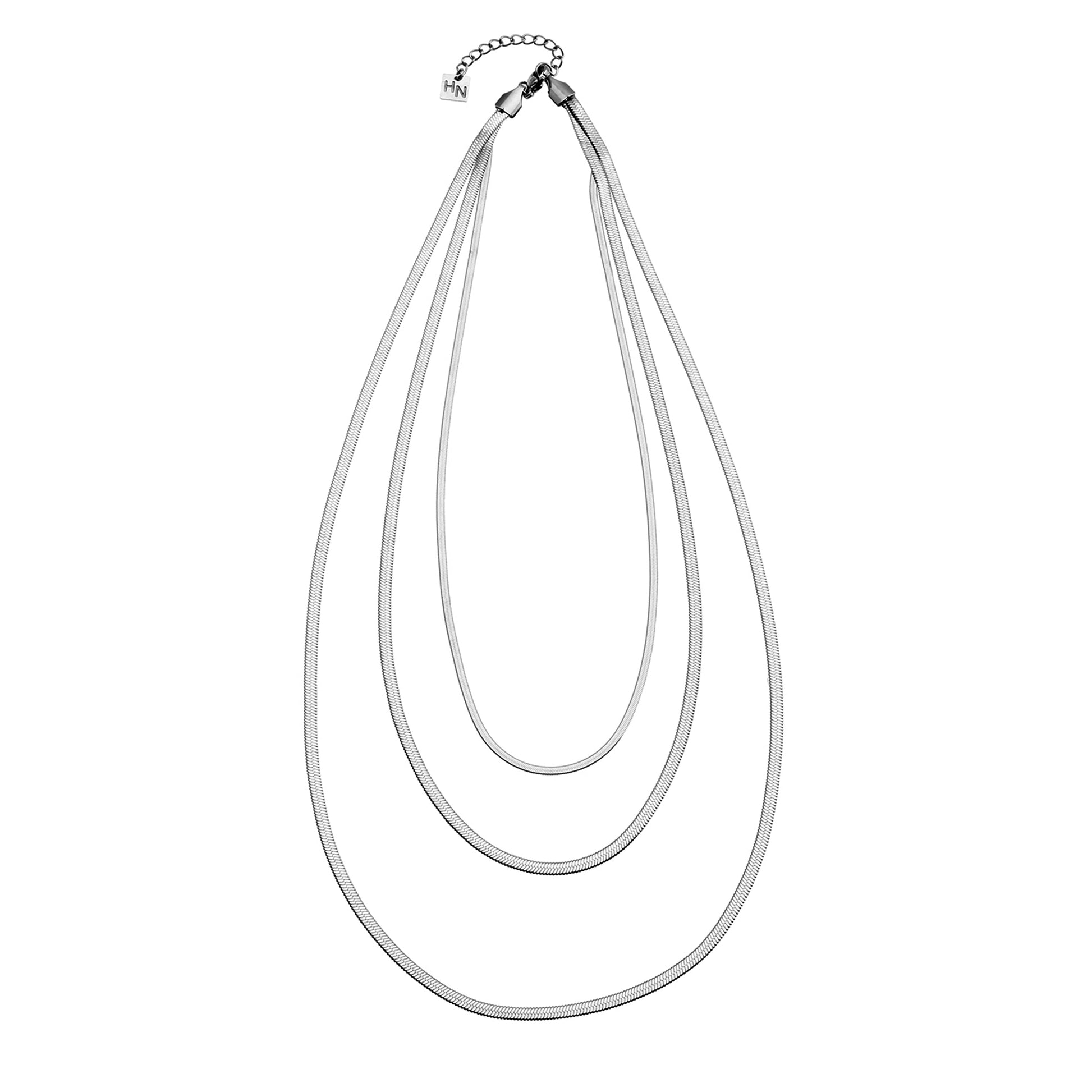 NALA Snake-Skin Textured Triple Layered Silver Necklace