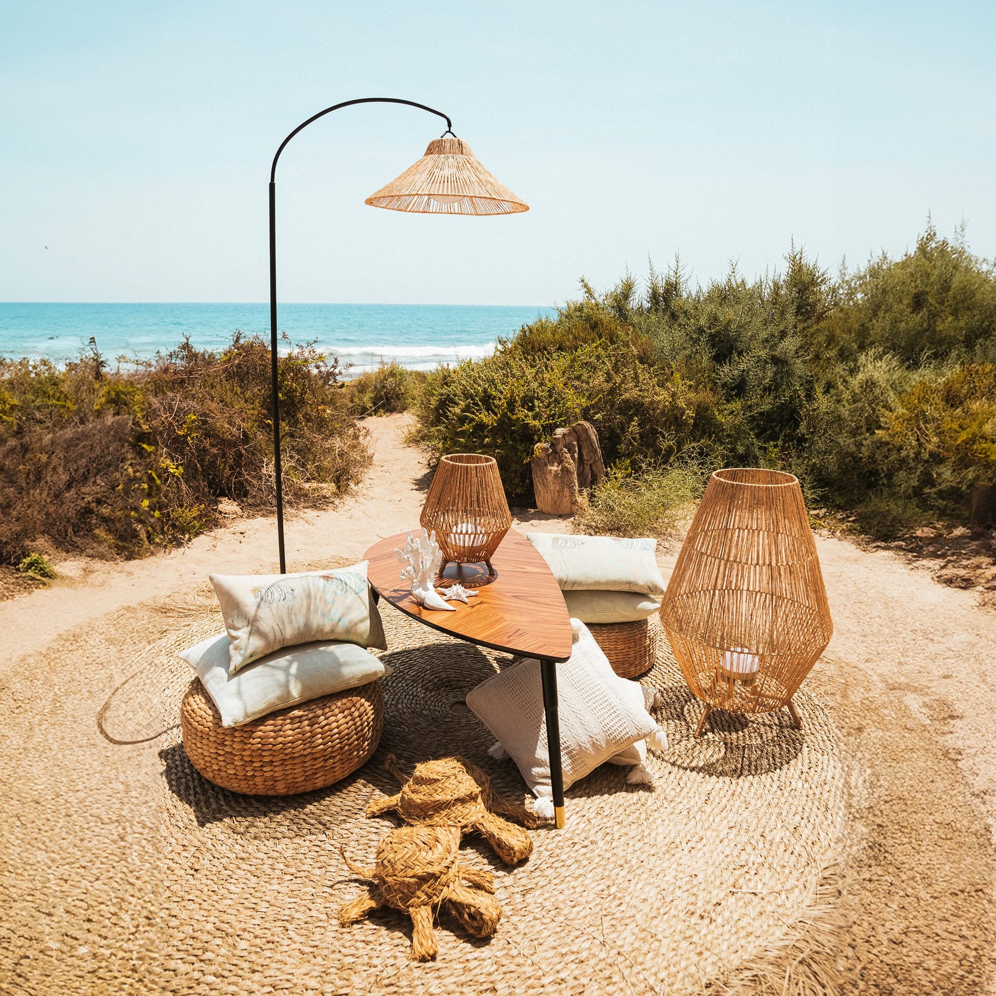 Discover the Niza by Newgarden, a revolutionary LED floor lamp designed for Canadian gardens, blending functionality and style without the need for any cables. Available in two sizes, Niza 165 and Niza 230, with heights of 165 cm and 230 cm respectively, these lamps are perfect for creating an elegant arc of light in any outdoor space. The lampshade, handcrafted from natural fibres, adds a touch of rustic charm, measuring 40 cm in diameter for Niza 165 and 80 cm for Niza 230.