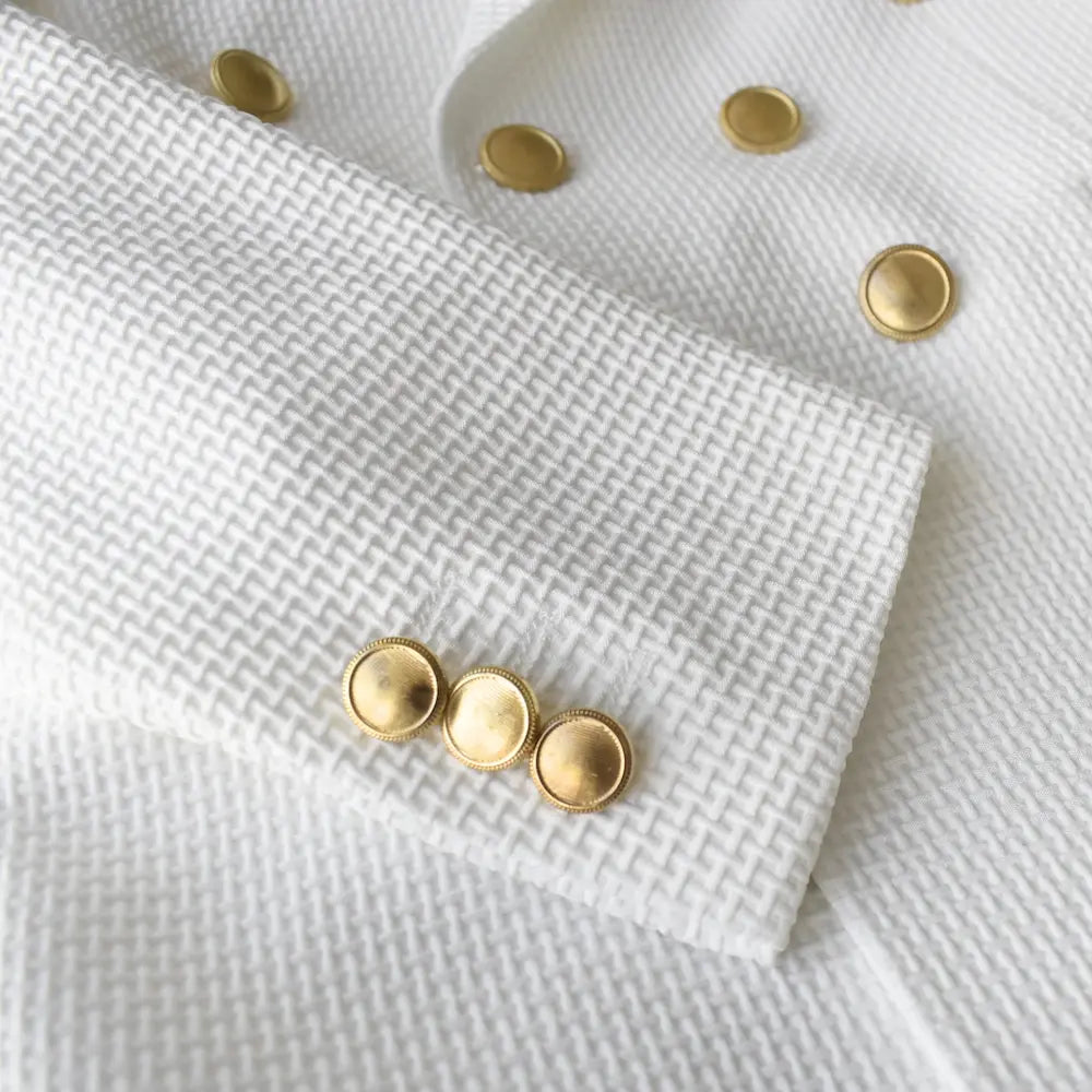 Tailored Blazer: Crafted from premium knit cotton, the blazer features a structured yet flexible fit. Its sleek design provides a sophisticated touch, making it suitable for formal occasions. The soft, breathable fabric ensures all-day comfort while maintaining a sharp silhouette.