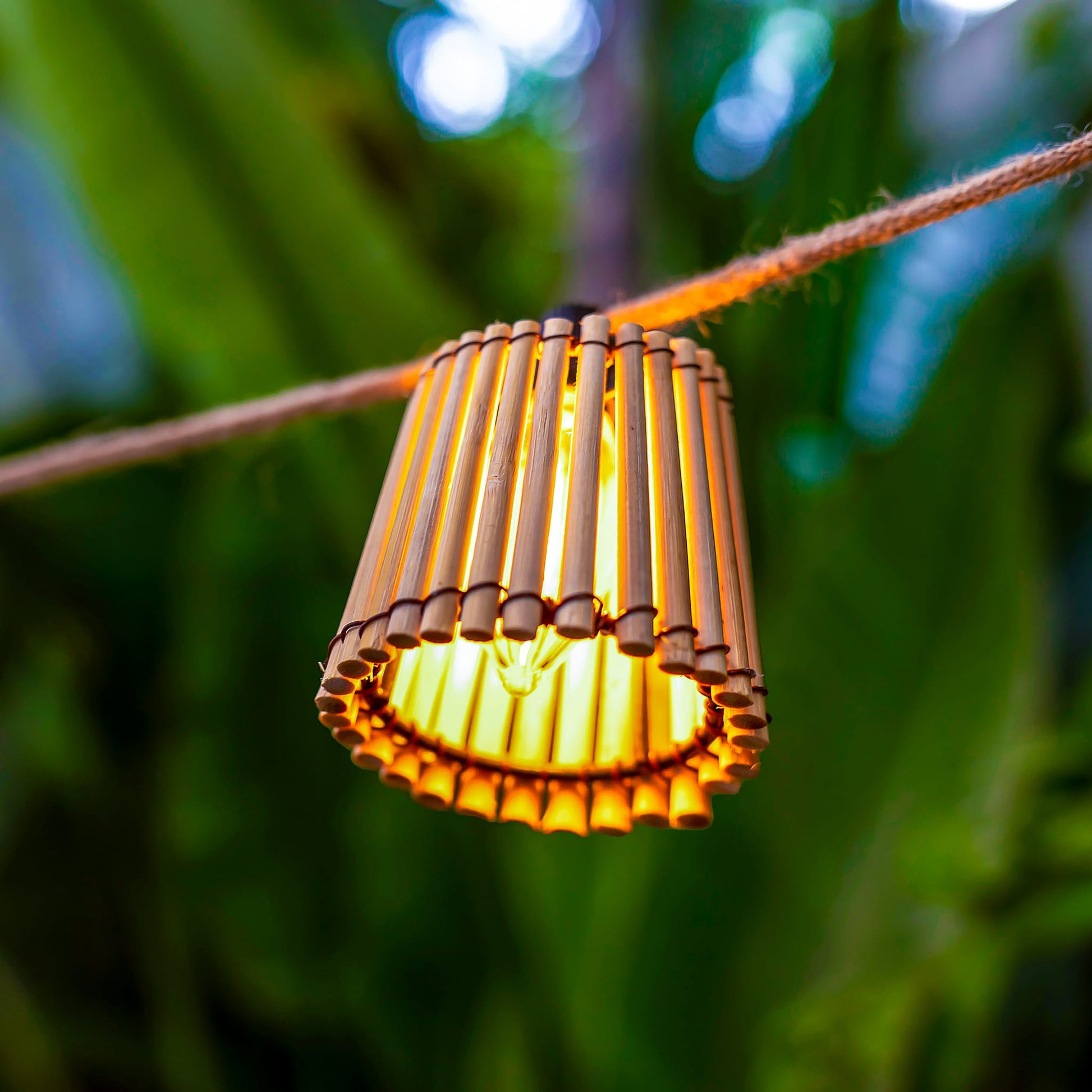 Enhance your outdoor space with the exquisite Okinawa bamboo garland by Newgarden. Handcrafted with care, this garland features 10 bell-shaped lampshades, each showcasing an alluring organic design. With its 10 replaceable bulbs and compatibility with other Okinawa series products like the lantern (Okinawa Lantern), hanging lamp (Okinawa 40 Hang), and remarkable Okinawa 170 floor lamp, you can effortlessly create a cohesive set of luminous accents that infuse your garden with a serene and natural ambiance.