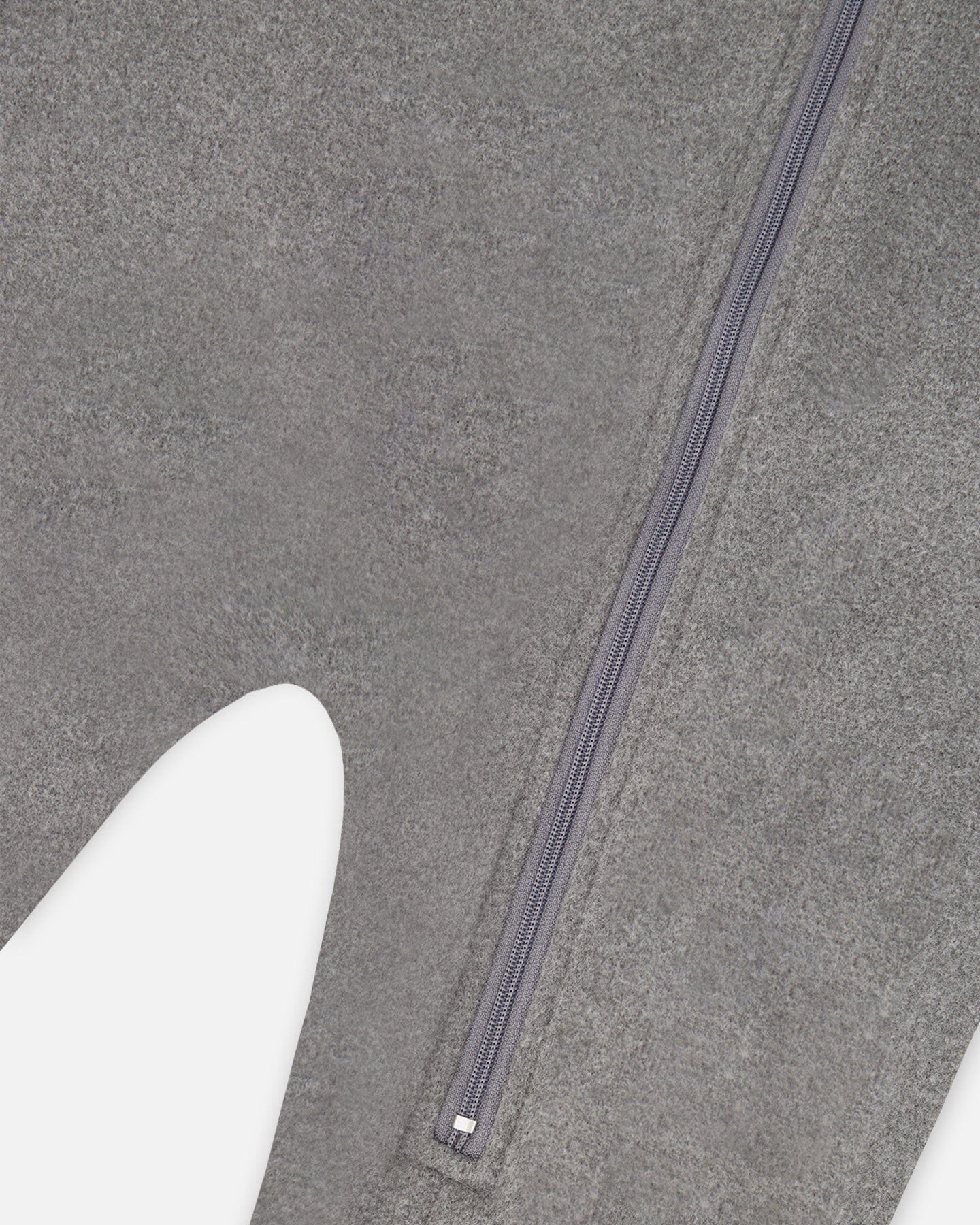 It's essential to be comfortable when wearing a snowsuit, so we've designed this one-piece base layer in super soft and thick brushed jersey to keep little ones warm yet able to move freely. In dark heather grey, this thermal underwear jumpsuit features long raglan sleeves, a round neckline, and an asymmetrical zipper closure.