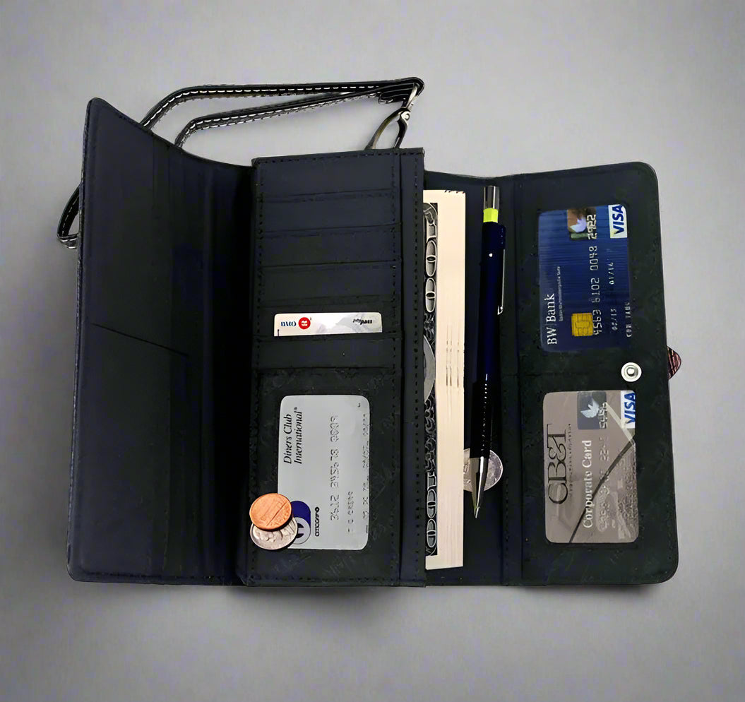 - Single removable strap to convert the wallet into a wristlet