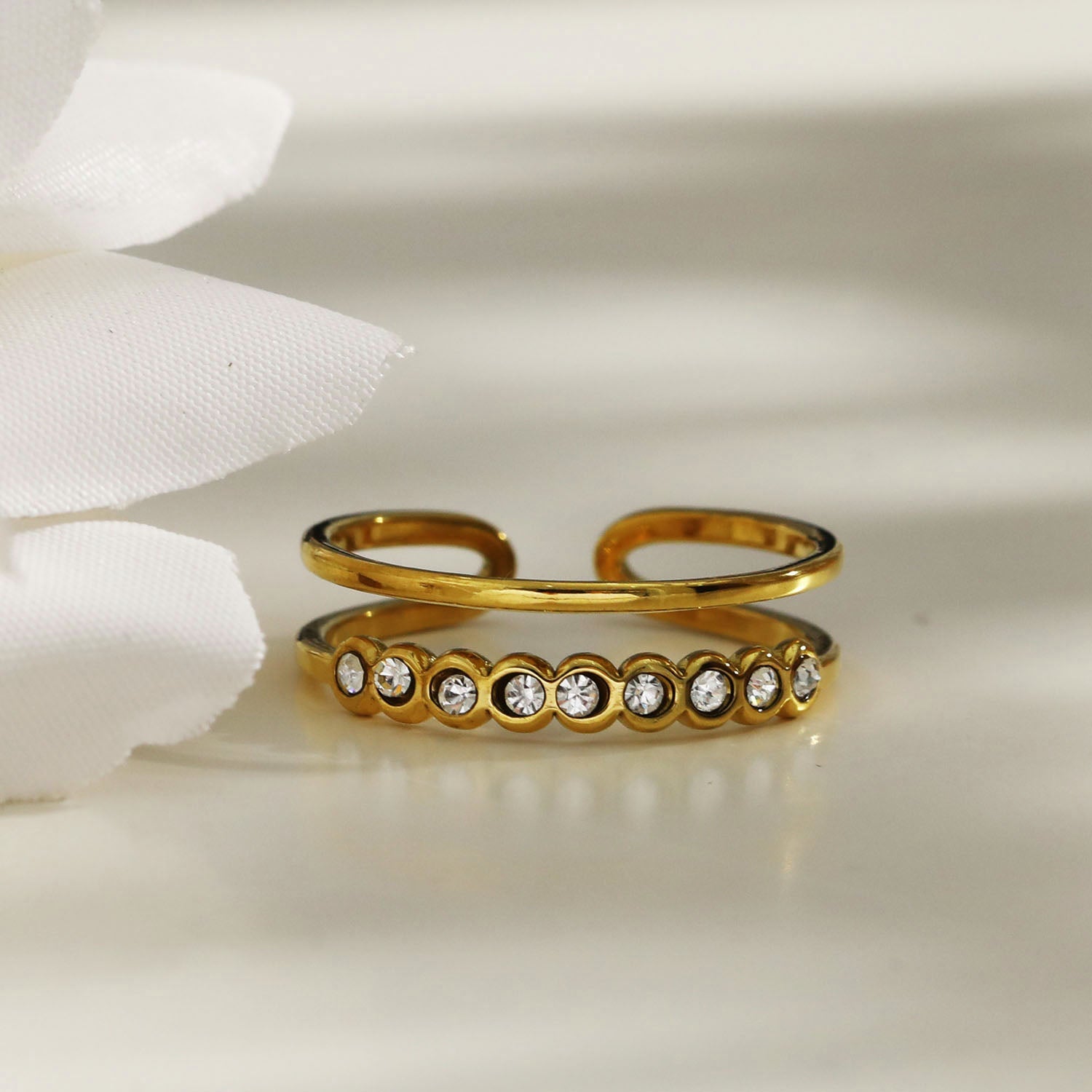 ORDELLA: Parallel Double Stacked Zirconia Embellished Ring