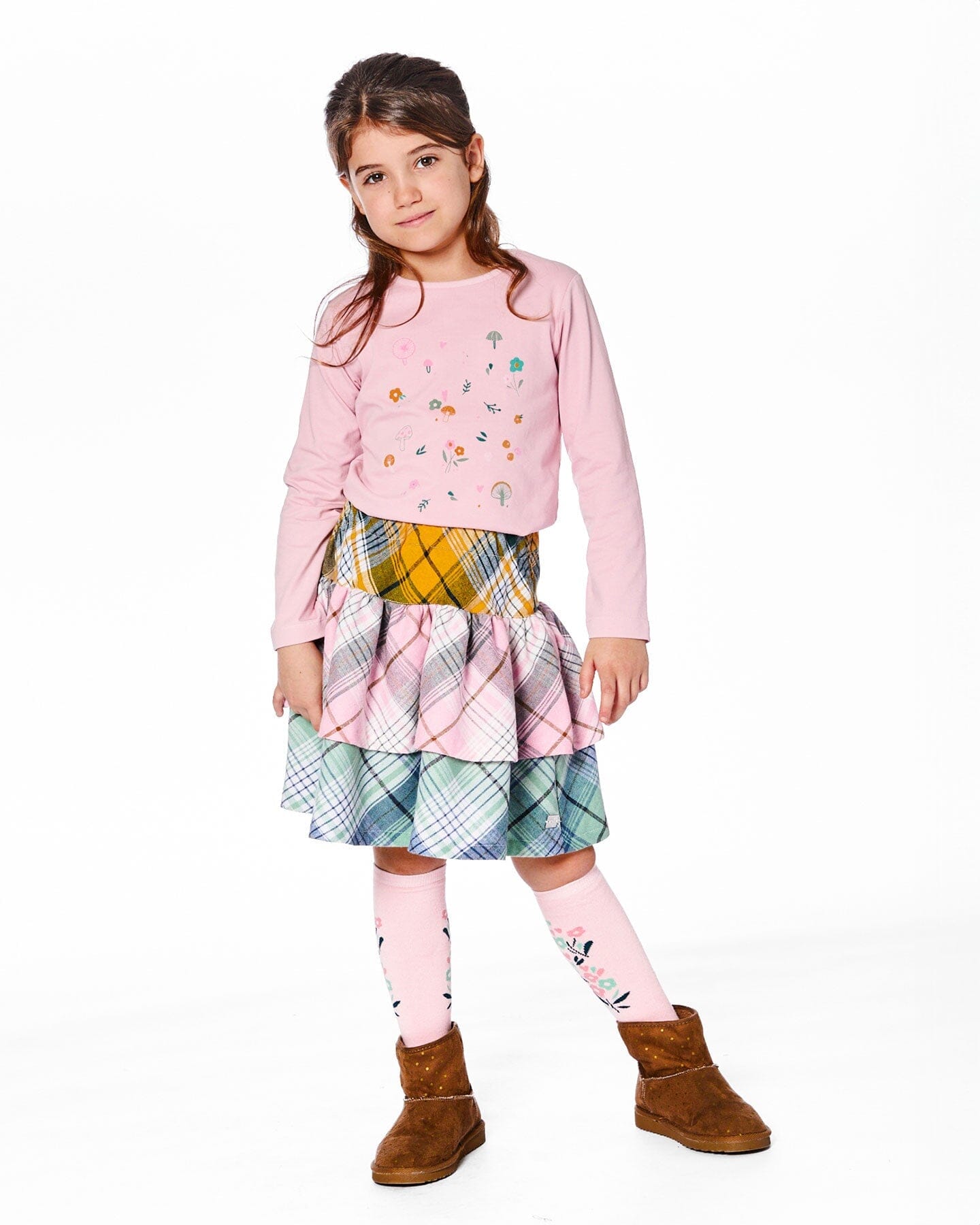 Dreamy and soft, this Organic Cotton Long Sleeve T-shirt Dusty Pink adds a woodland twist to any outfit. The organic cotton jersey top features a playful forest-inspired graphic print on the chest, a round neckline, long raglan sleeves, and a fitted silhouette designed for layering or solo wear. A poetic and comfy essential to style with skirts, jeans or leggings from our “Chesnuts In The Woods” collection.