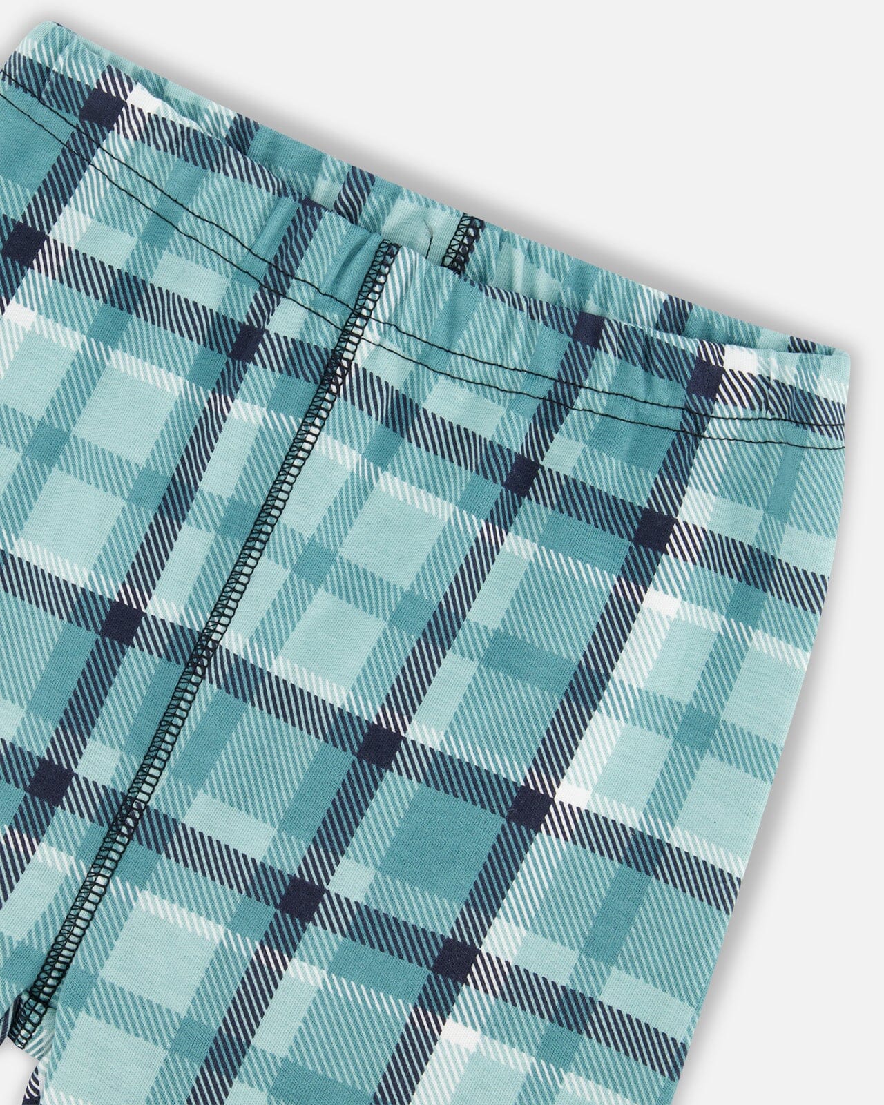 Make sleeping, lounging, and enjoying breakfast the most adorable moments of the day with our Organic Cotton Two Piece Pajama Set Green Printed Cars. Featuring bold contrasting prints, this set includes a long sleeve top with solid raglan sleeves, a round neckline, contrast trim, and an allover race car print. The pull-on pants feature a bold plaid pattern with a comfy elastic waistband and solid trim at each ankle.