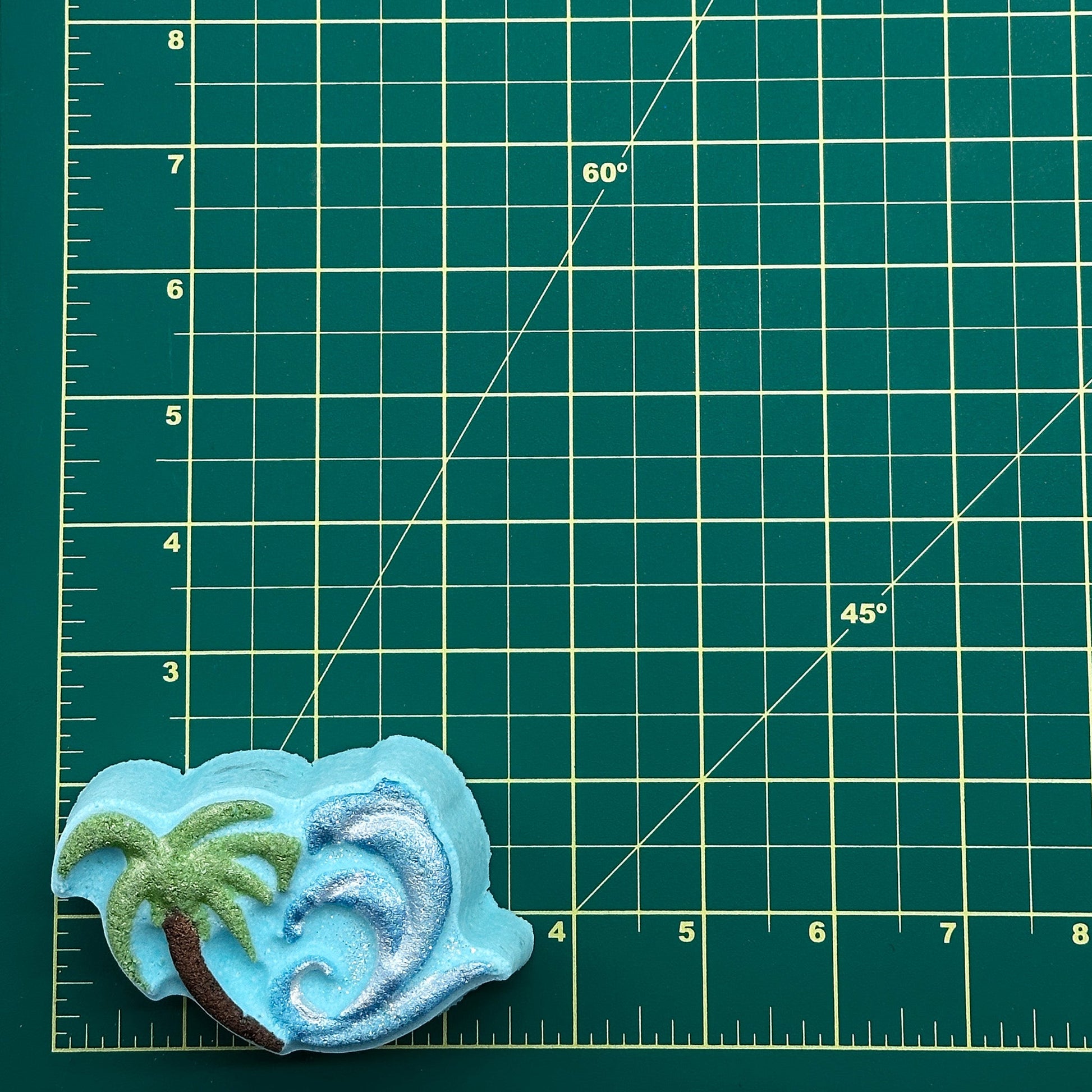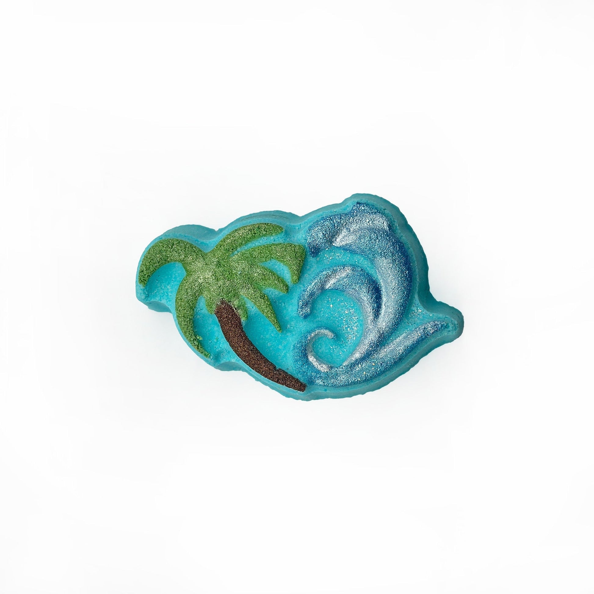 Take a tropical bath with our Palm Tree bath bomb! Indulge in the sweet scent of rock candy and Caribbean fruit while relaxing in a bubbly oasis. Instant vacation vibes await with this palm tree-shaped bath bomb.