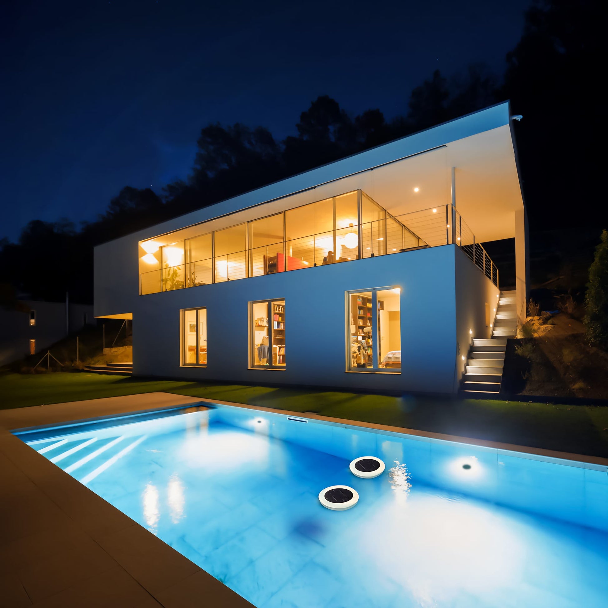 Illuminate your pool with Papaya, the wireless light specially designed for pool use. With its compact and waterproof design (IP68), it can be submerged up to 1 meter. The integrated solar panel ensures efficient charging without the hassle of cables. Control the light with the included remote, choosing from a wide range of colors, color-changing modes, and activating the twilight sensor for automatic nightfall illumination.