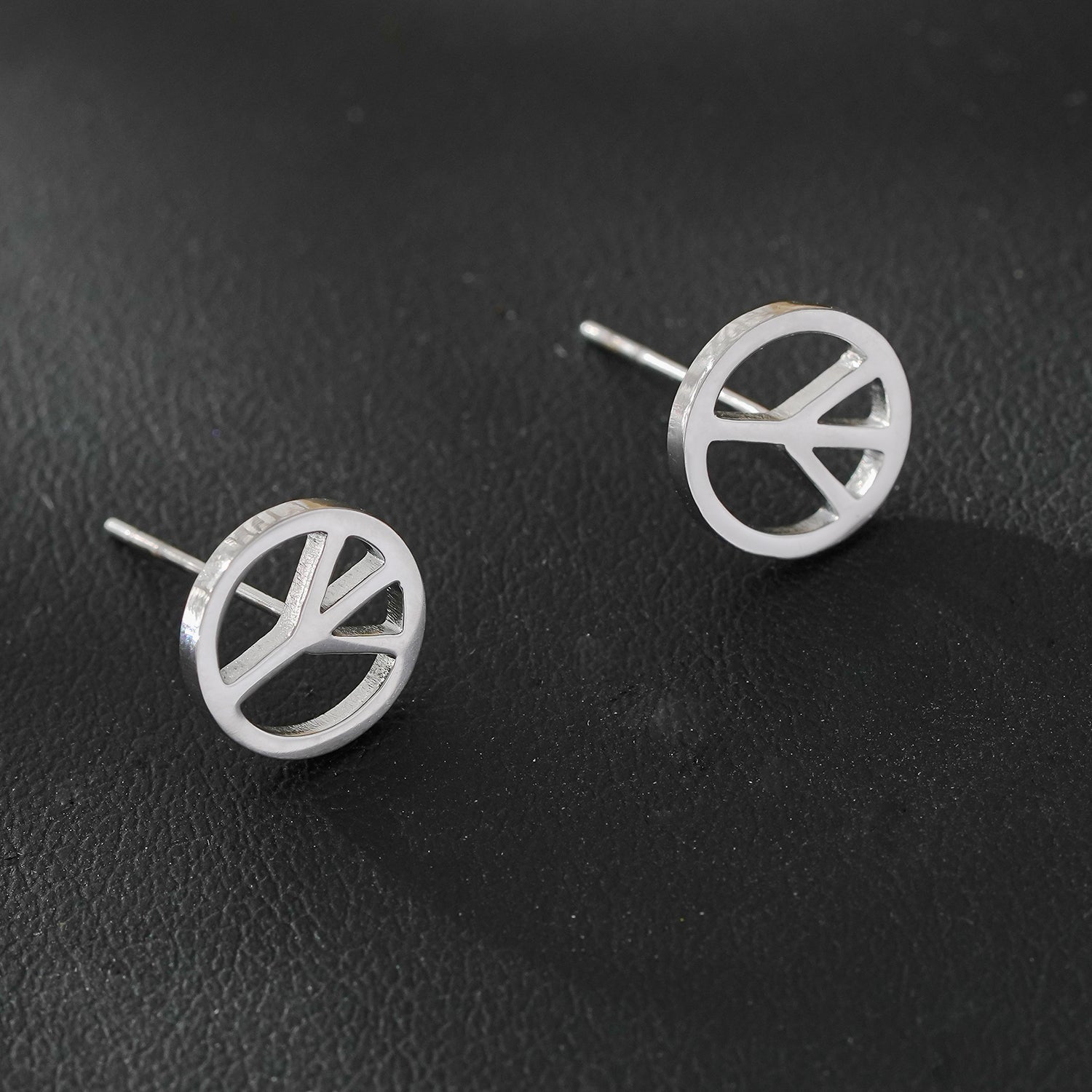 PEACE Logo Stud Earrings in Silver Tone (White Gold)