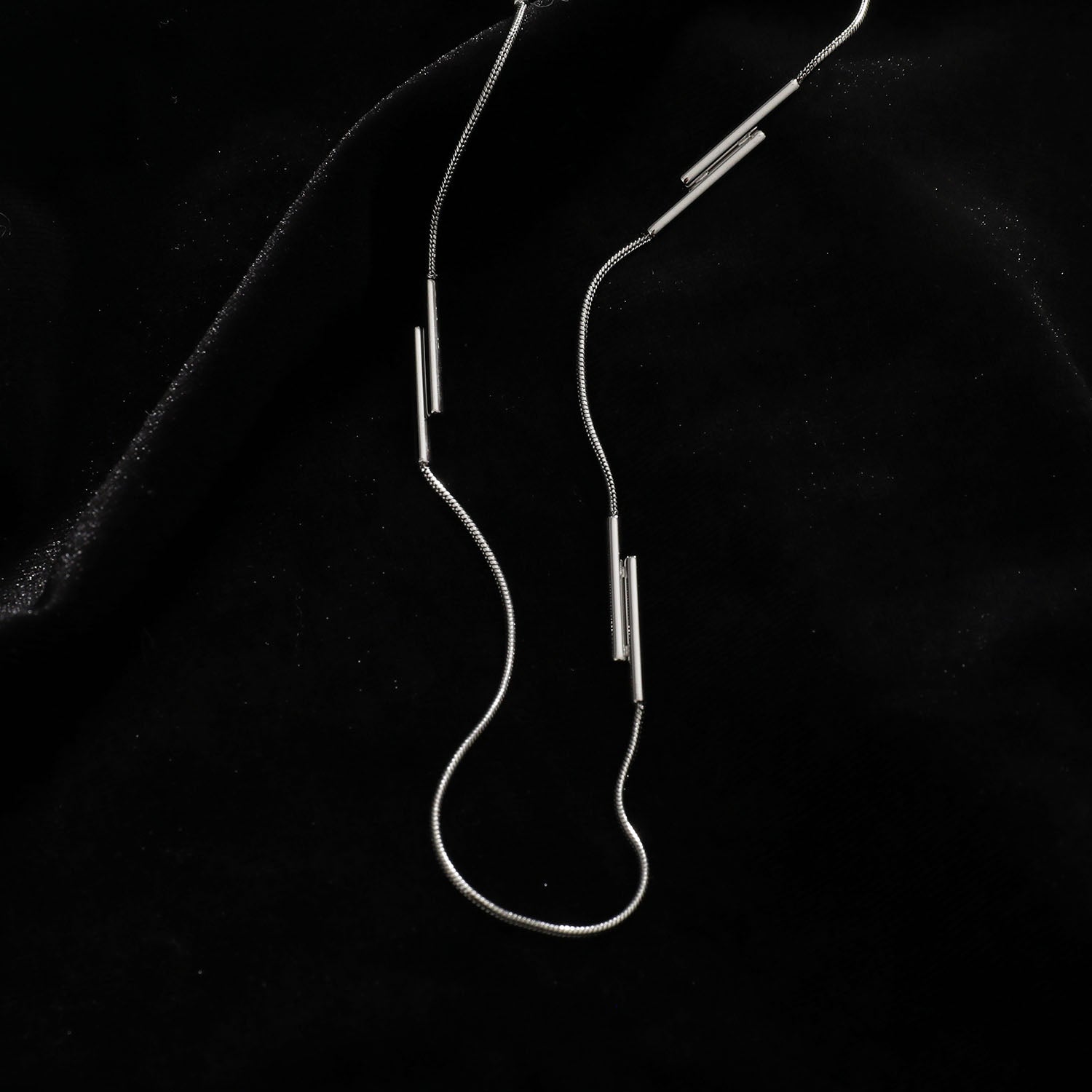 PEDRINA Duo Stick Detail Silver Chain Necklace