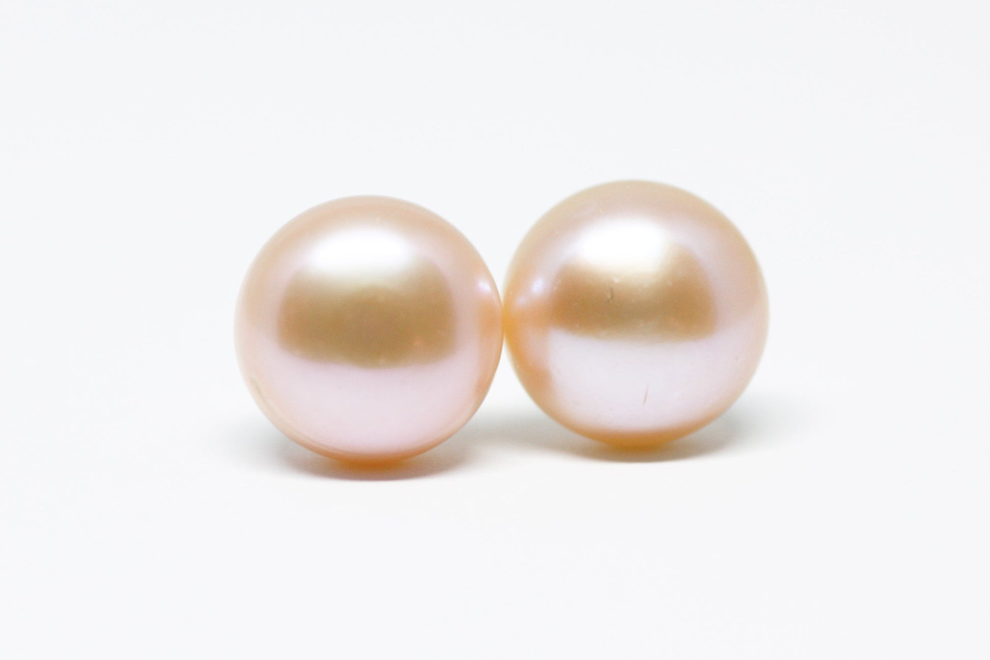 These beautiful, substantial stud earrings feature genuine light pink freshwater pearls on solid sterling silver backings. They're a very pretty, feminine, soft pink in a size that still shows up.