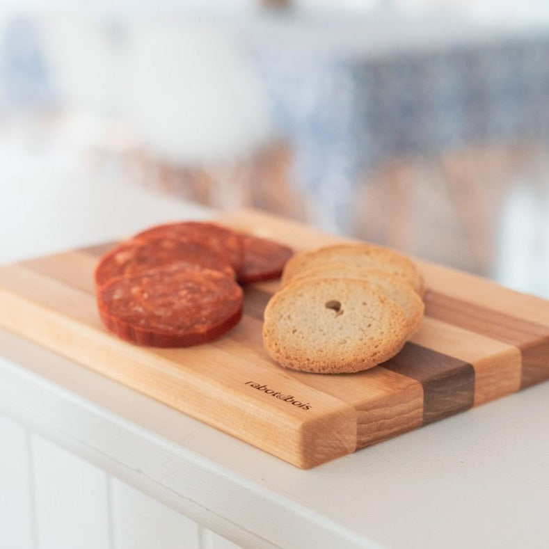 Une petite planche à découper en bois qui peut aussi servir de planche de présentation !