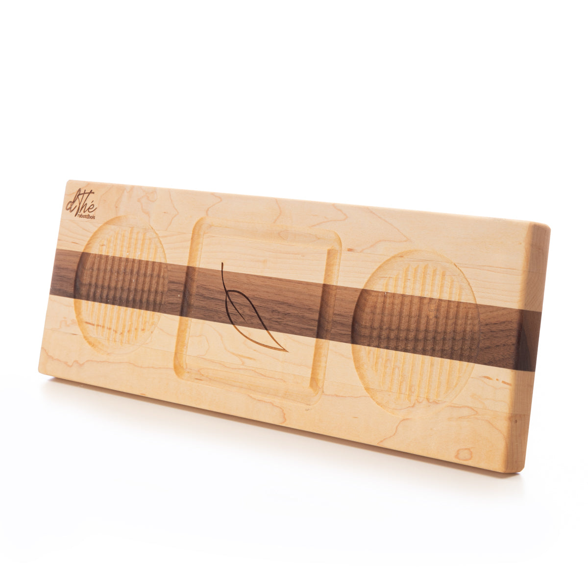 - Matériel : Faite au Québec en érable, avec une insertion de noyer noir