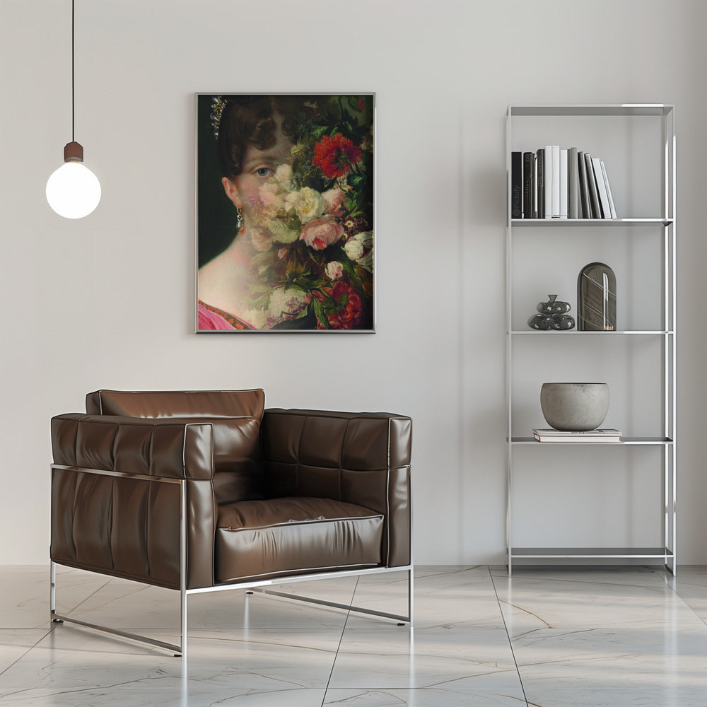 Wall art Portrait of Hortense de Beauharnais, queen of Holland with flower still life by Maria Hylarides. Excellent decor powder room wall art