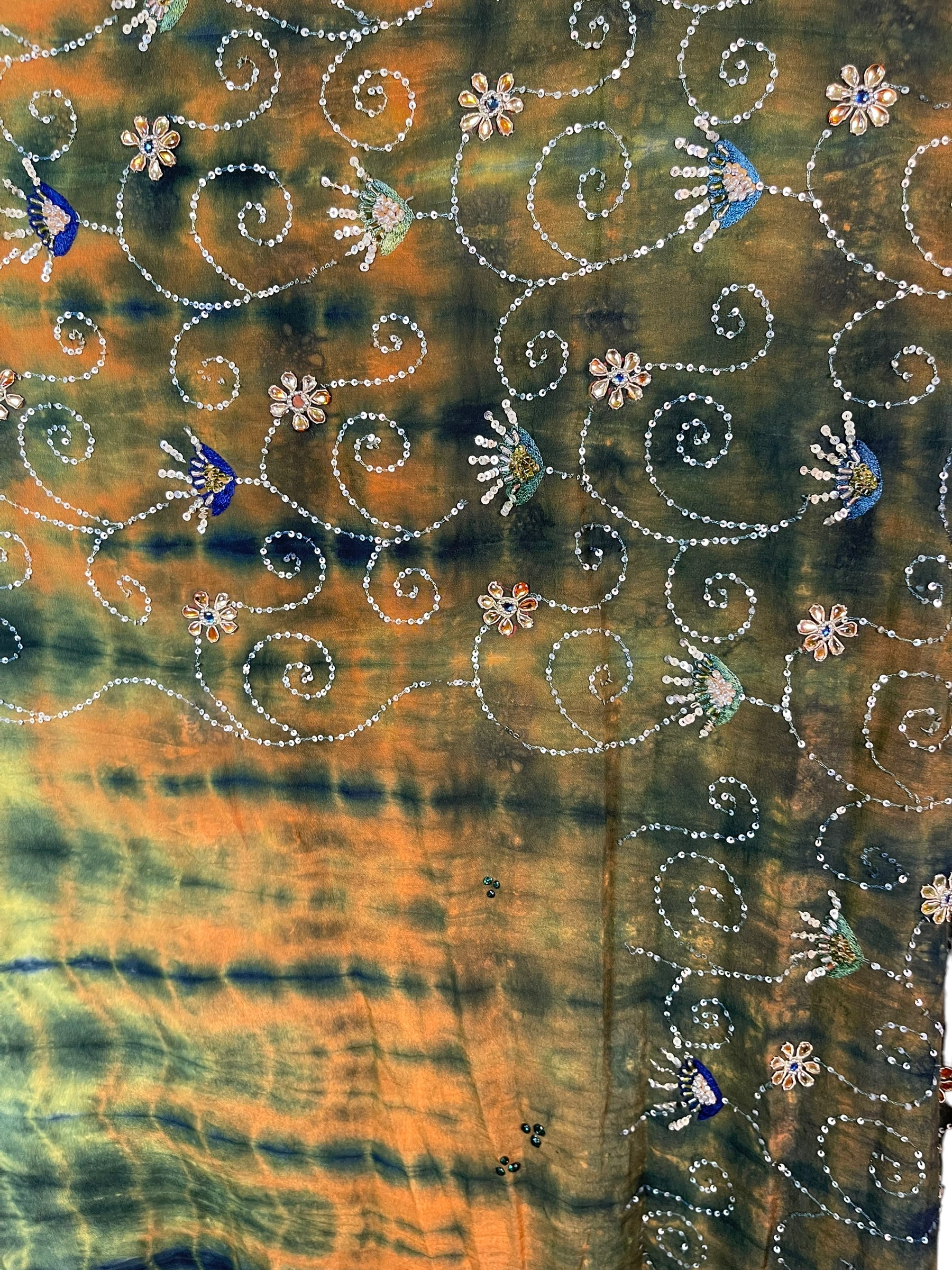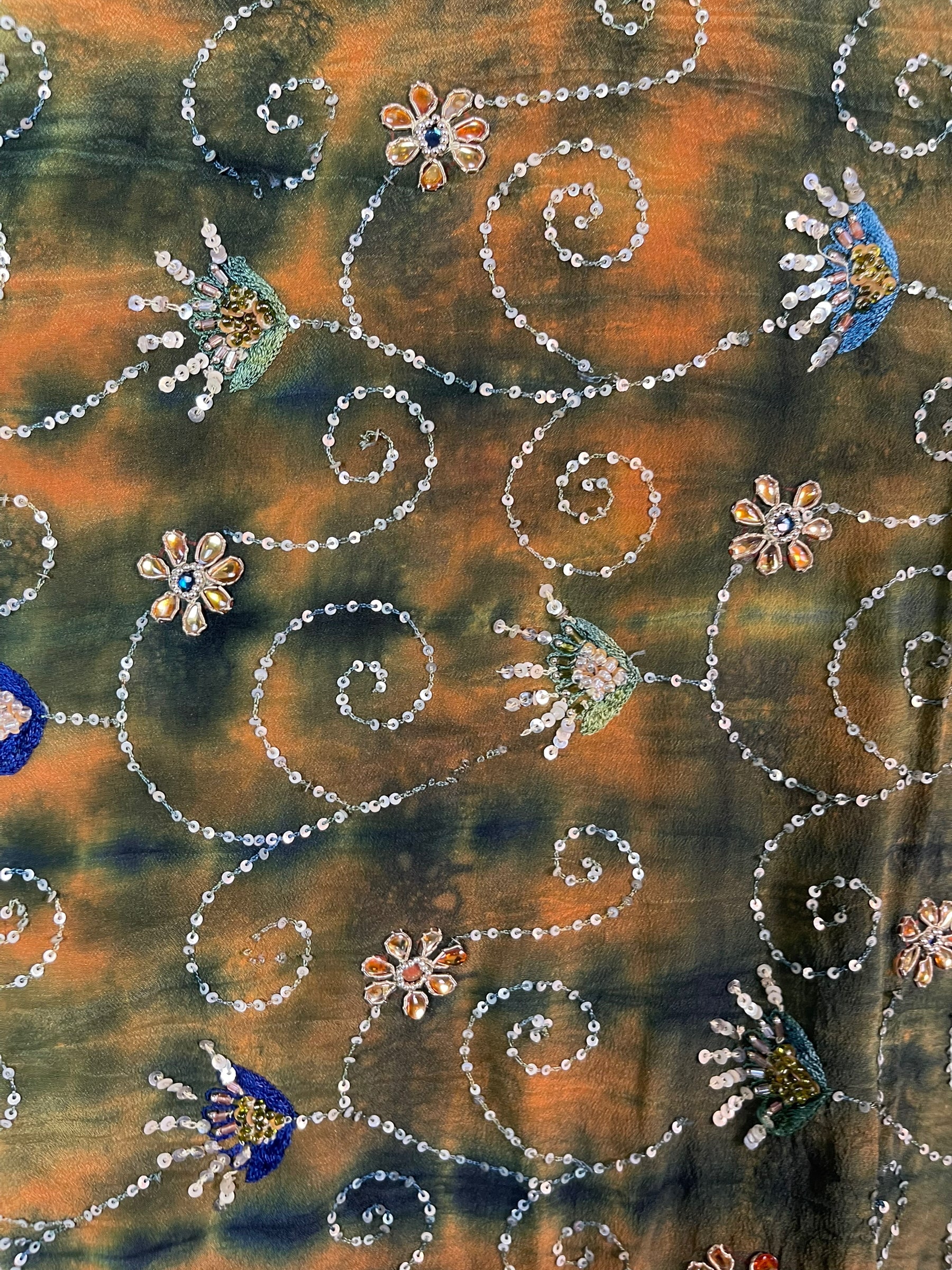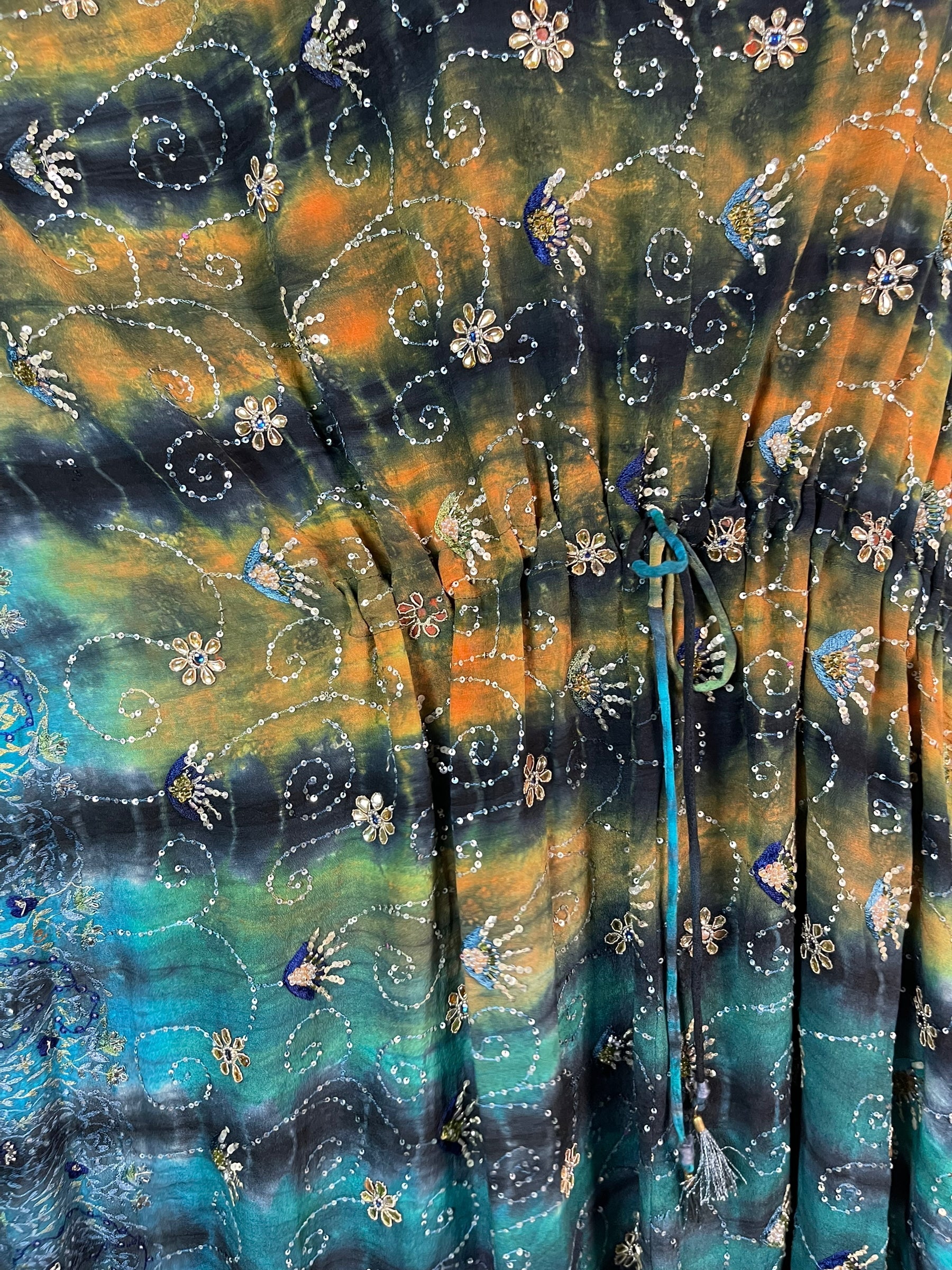 In Eastern philosophy, an Avatar is an incarnation that teaches how to evolve virtues of the past into the present. The Pure Upcycled Silk Avatar Collection is made from vintage pure silk saris, chosen and worn by women in the past to celebrate their lives.If you look very closely, you will see that the silks in this collection show some of the character of their previous incarnations through the appliqués that have been lovingly applied to bring new life to the fabric. This piece is a reminder that we are part of a collective journey to which we all add a little something.