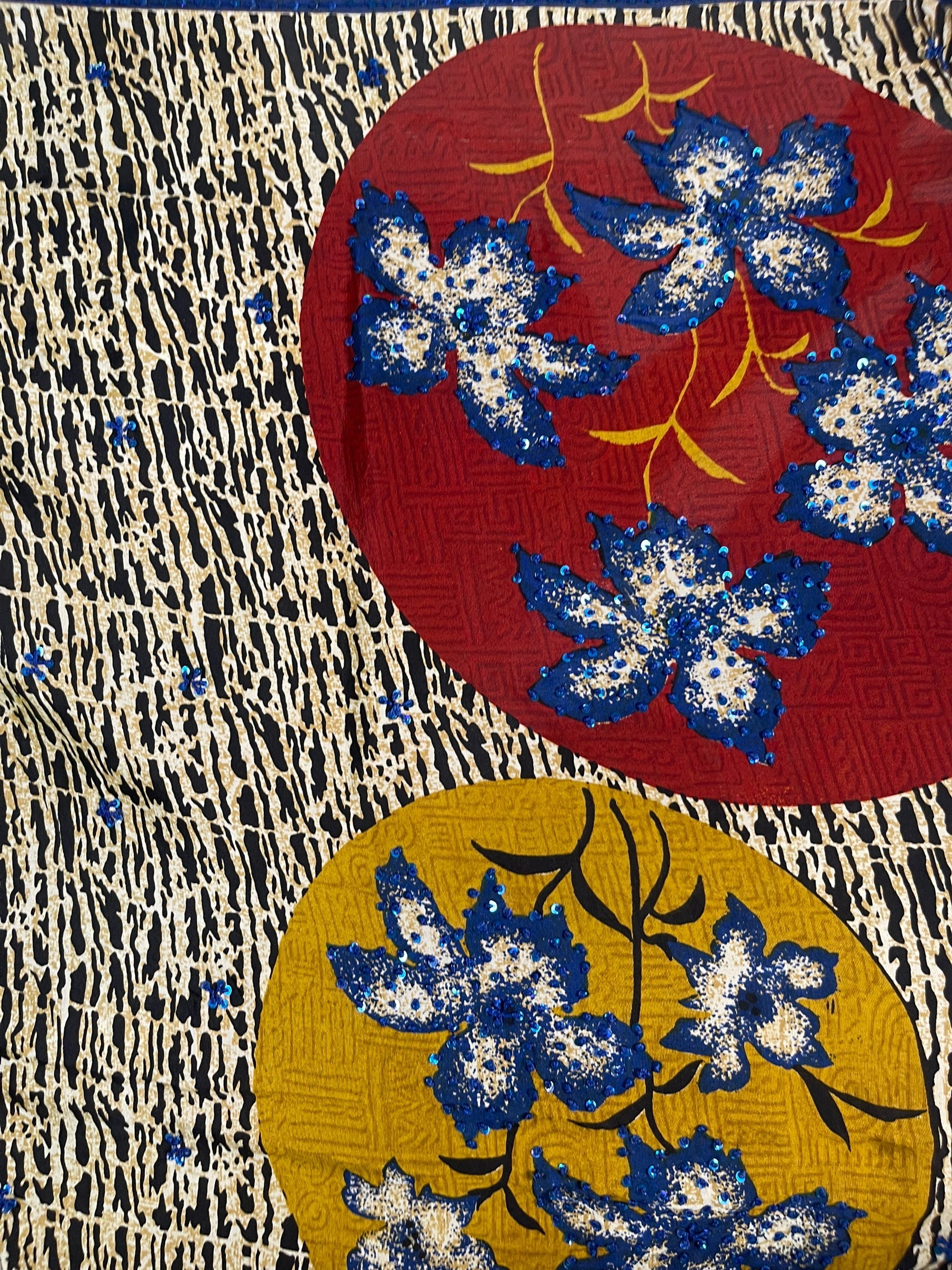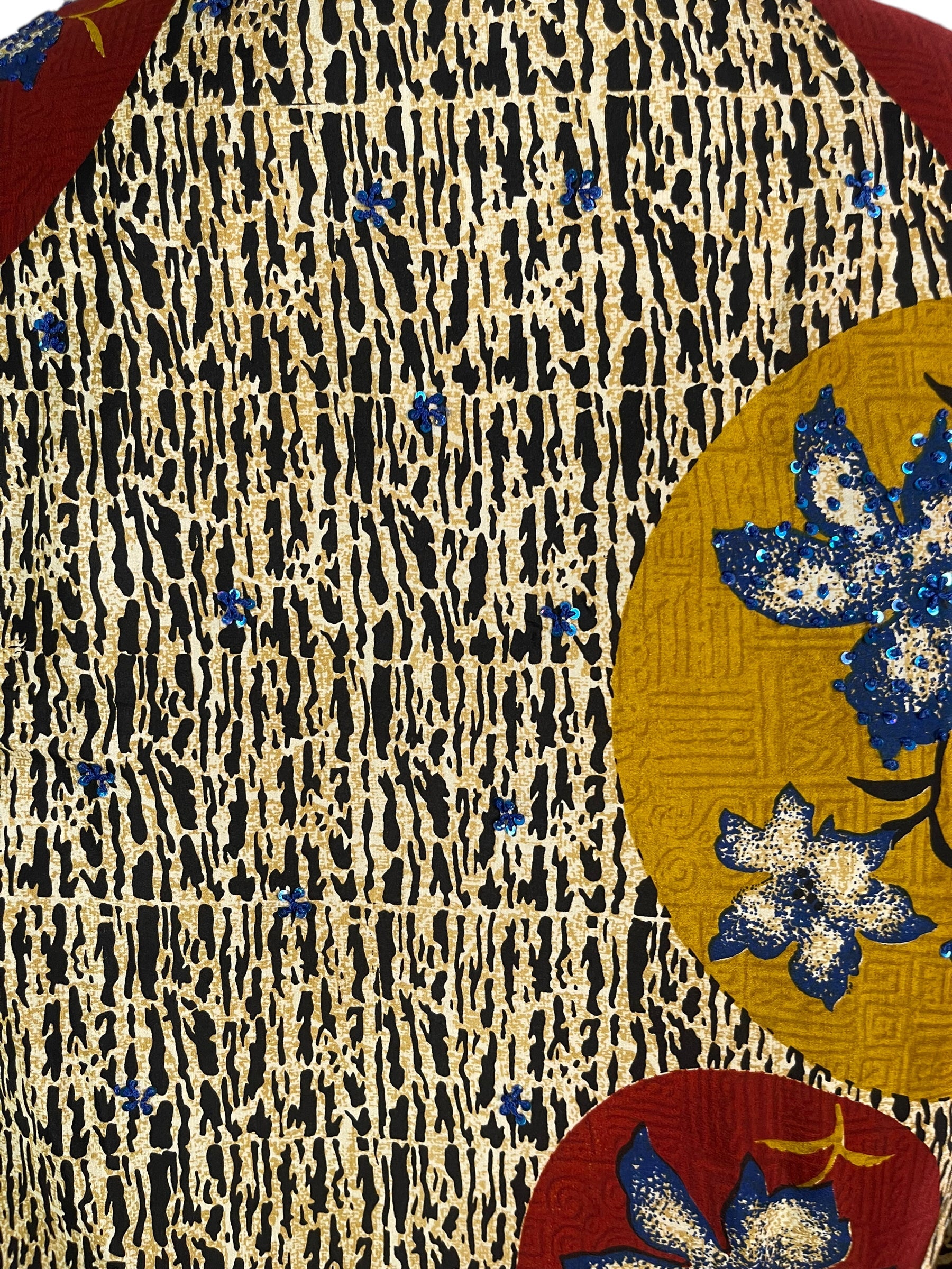 If you look very closely, you will see that the silks in this collection show some of the character of their previous incarnations through the appliqués that have been lovingly applied to bring new life to the fabric. This piece is a reminder that we are part of a collective journey to which we all add a little something.