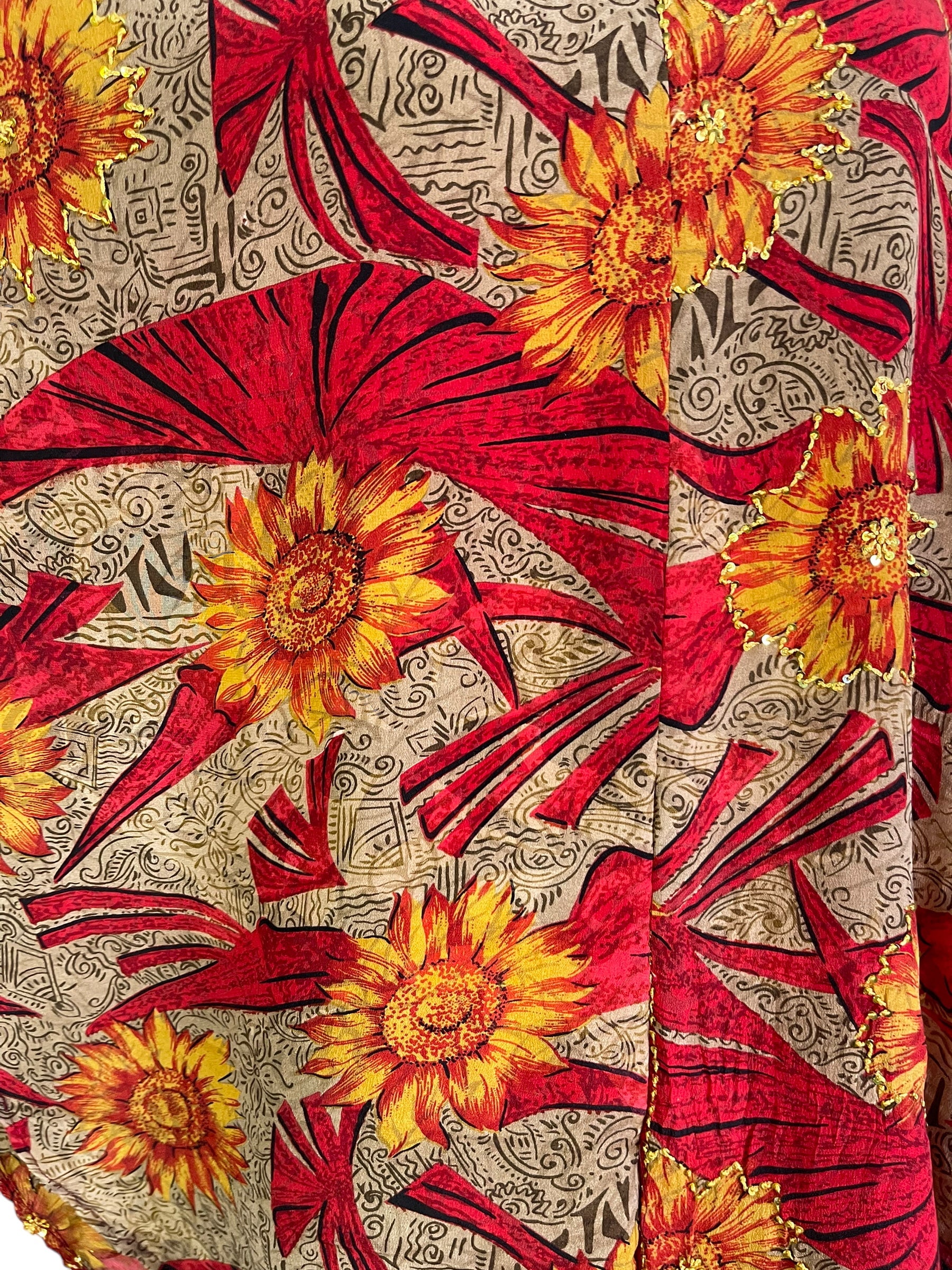 In Eastern philosophy, an Avatar is an incarnation that teaches how to evolve virtues of the past into the present. The Pure Upcycled Silk Avatar Collection is made from vintage pure silk saris, chosen and worn by women in the past to celebrate their lives.If you look very closely, you will see that the silks in this collection show some of the character of their previous incarnations through the appliqués that have been lovingly applied to bring new life to the fabric. This piece is a reminder that we are part of a collective journey to which we all add a little something.