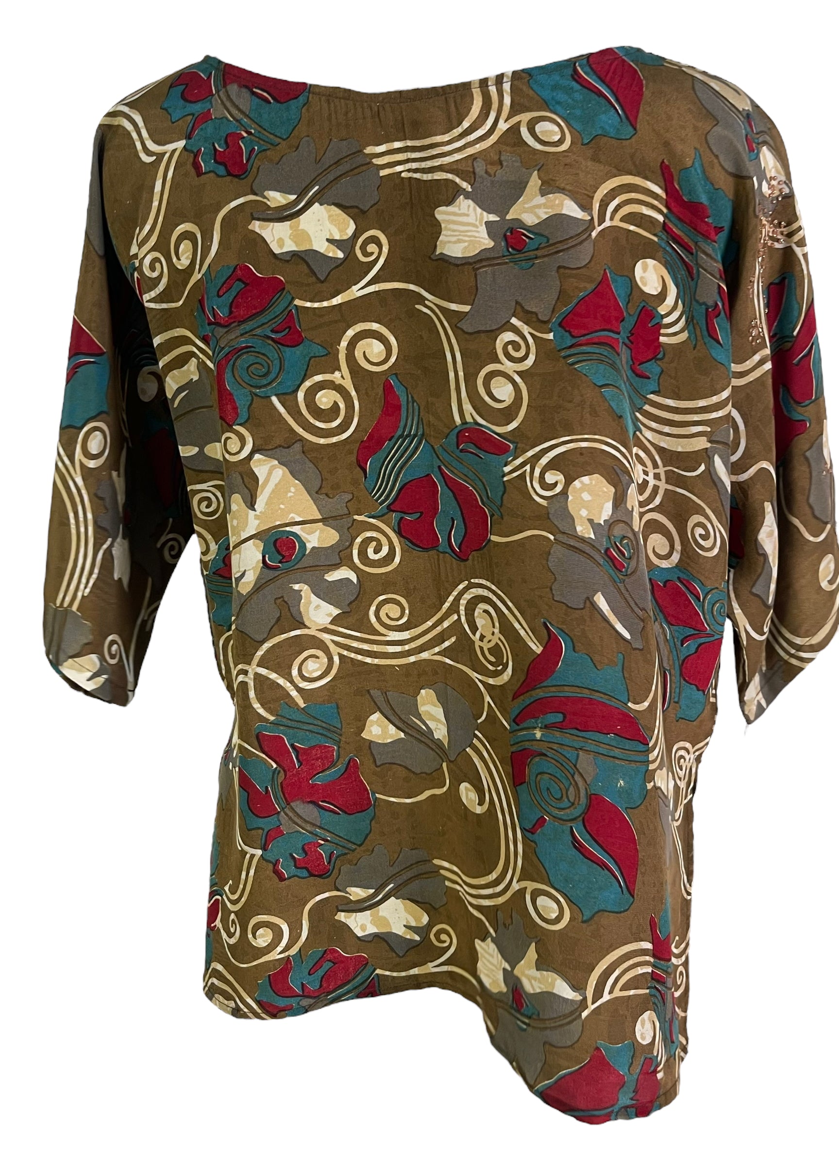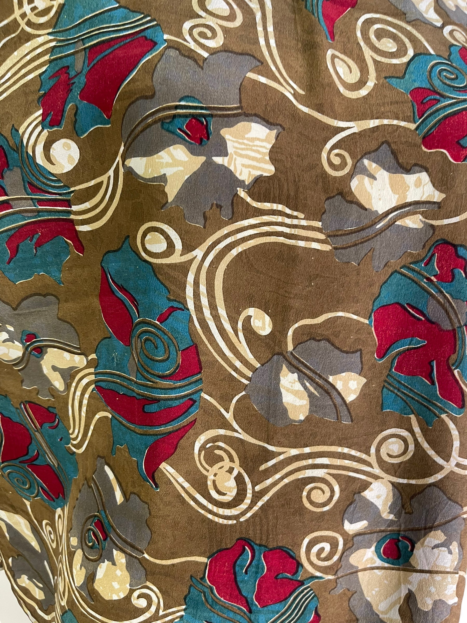 In Eastern philosophy, an Avatar is an incarnation that teaches how to evolve virtues of the past into the present. The Pure Upcycled Silk Avatar Collection is made from vintage pure silk saris, chosen and worn by women in the past to celebrate their lives.If you look very closely, you will see that the silks in this collection show some of the character of their previous incarnations through the appliqués that have been lovingly applied to bring new life to the fabric. This piece is a reminder that we are part of a collective journey to which we all add a little something.