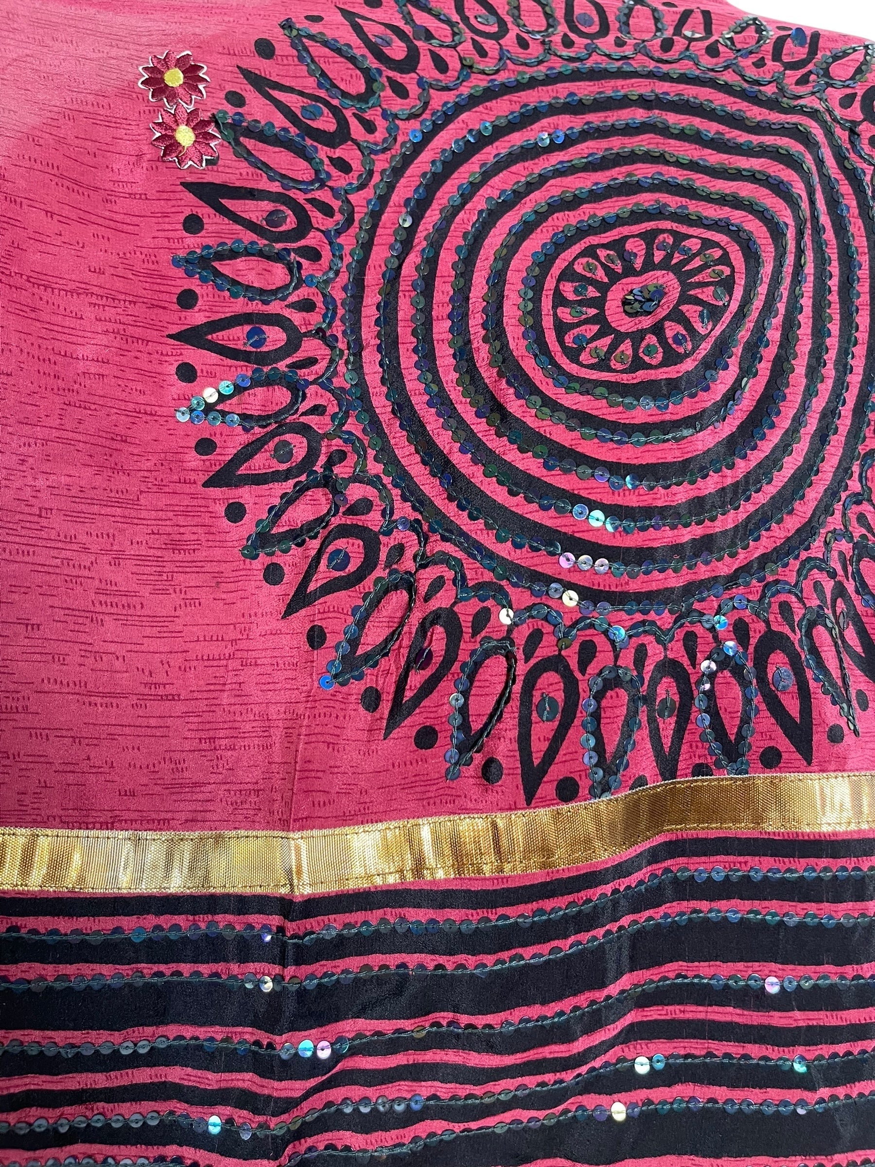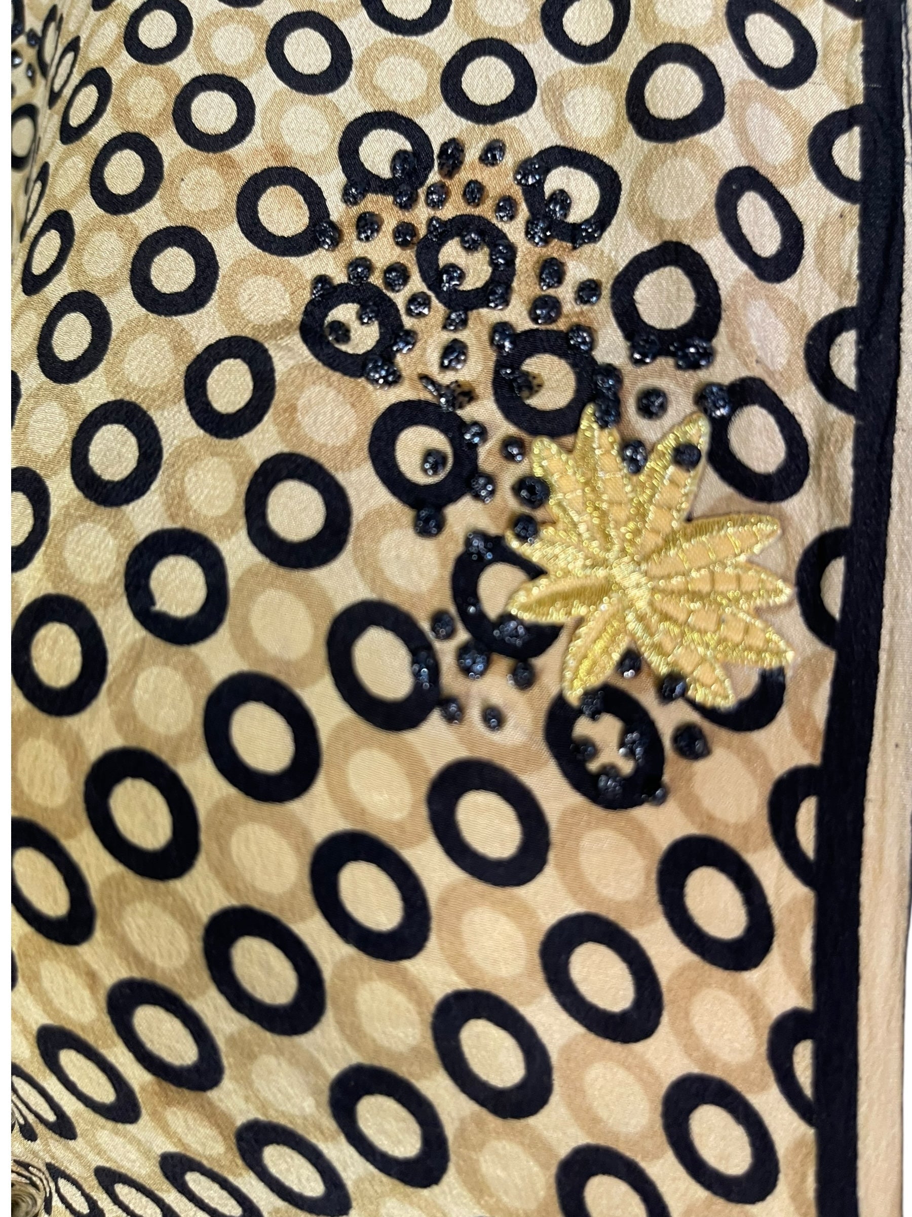 In Eastern philosophy, an Avatar is an incarnation that teaches how to evolve virtues of the past into the present. The Pure Upcycled Silk Avatar Collection is made from vintage pure silk saris, chosen and worn by women in the past to celebrate their lives.If you look very closely, you will see that the silks in this collection show some of the character of their previous incarnations through the appliqués that have been lovingly applied to bring new life to the fabric. This piece is a reminder that we are part of a collective journey to which we all add a little something.