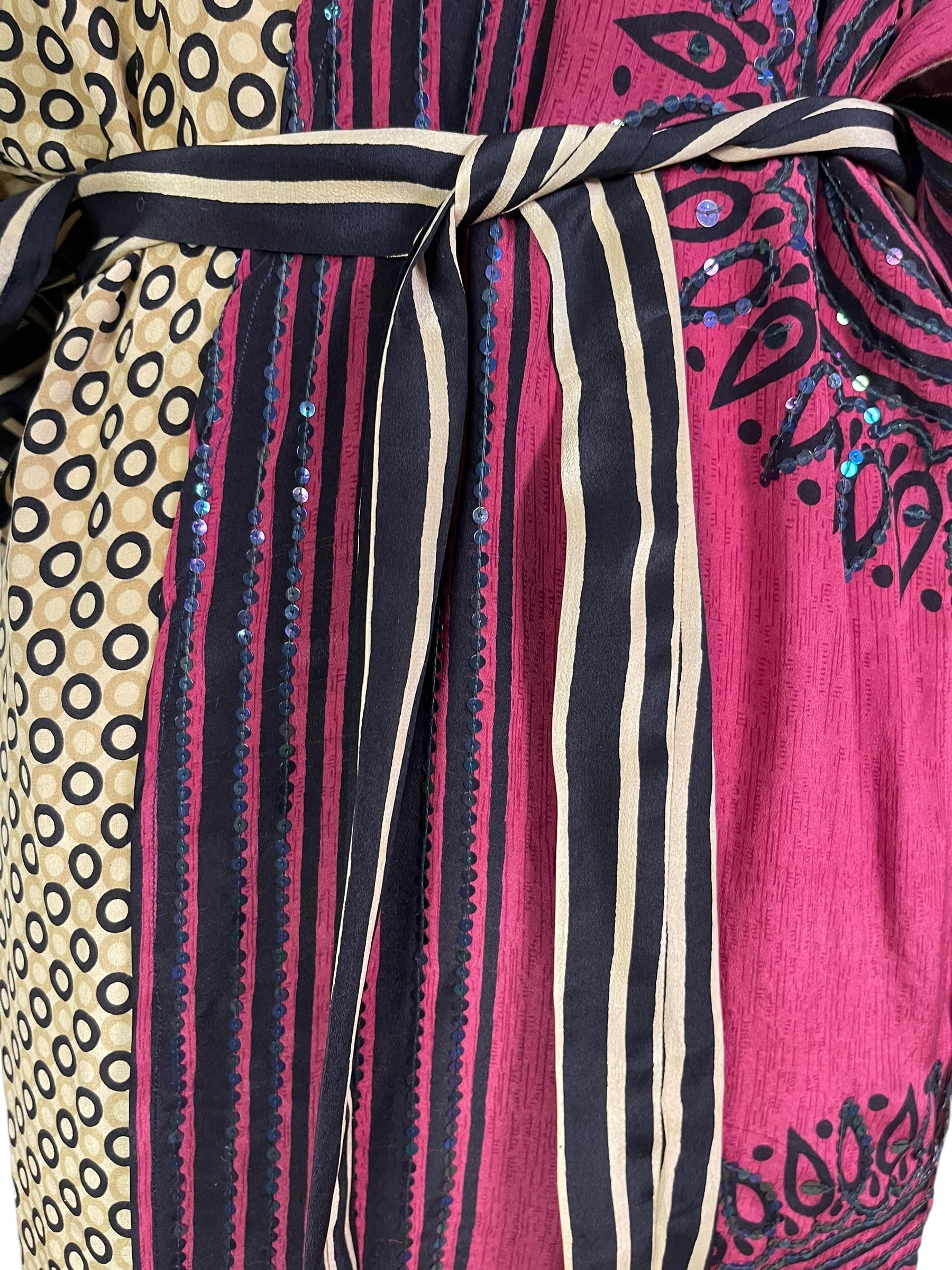 PRC6759 Avatar Long Pure Silk Kimono Sleeved Duster with Belt