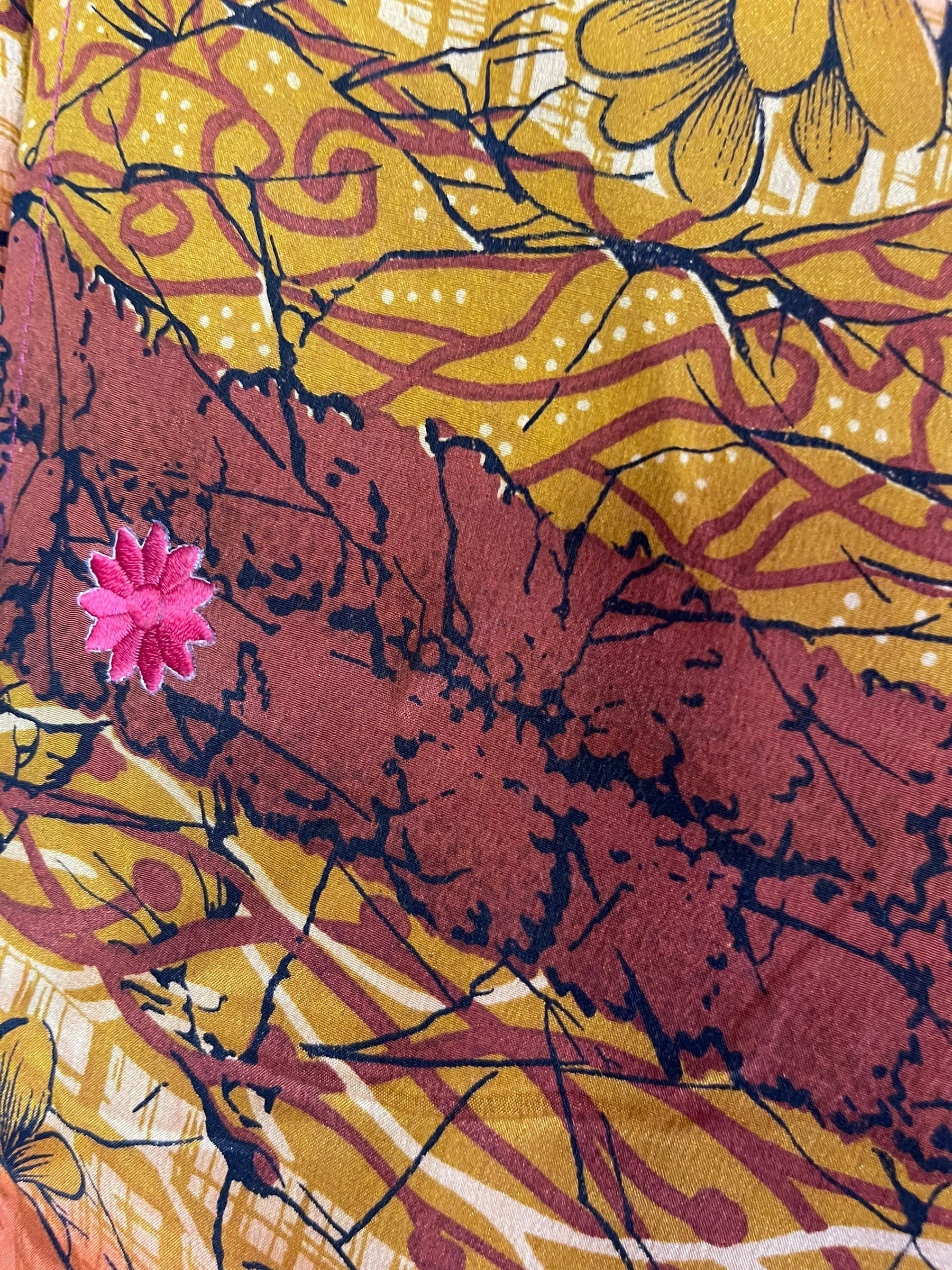 In Eastern philosophy, an Avatar is an incarnation that teaches how to evolve virtues of the past into the present. The Pure Upcycled Silk Avatar Collection is made from vintage pure silk saris, chosen and worn by women in the past to celebrate their lives.If you look very closely, you will see that the silks in this collection show some of the character of their previous incarnations through the appliqués that have been lovingly applied to bring new life to the fabric. This piece is a reminder that we are part of a collective journey to which we all add a little something.