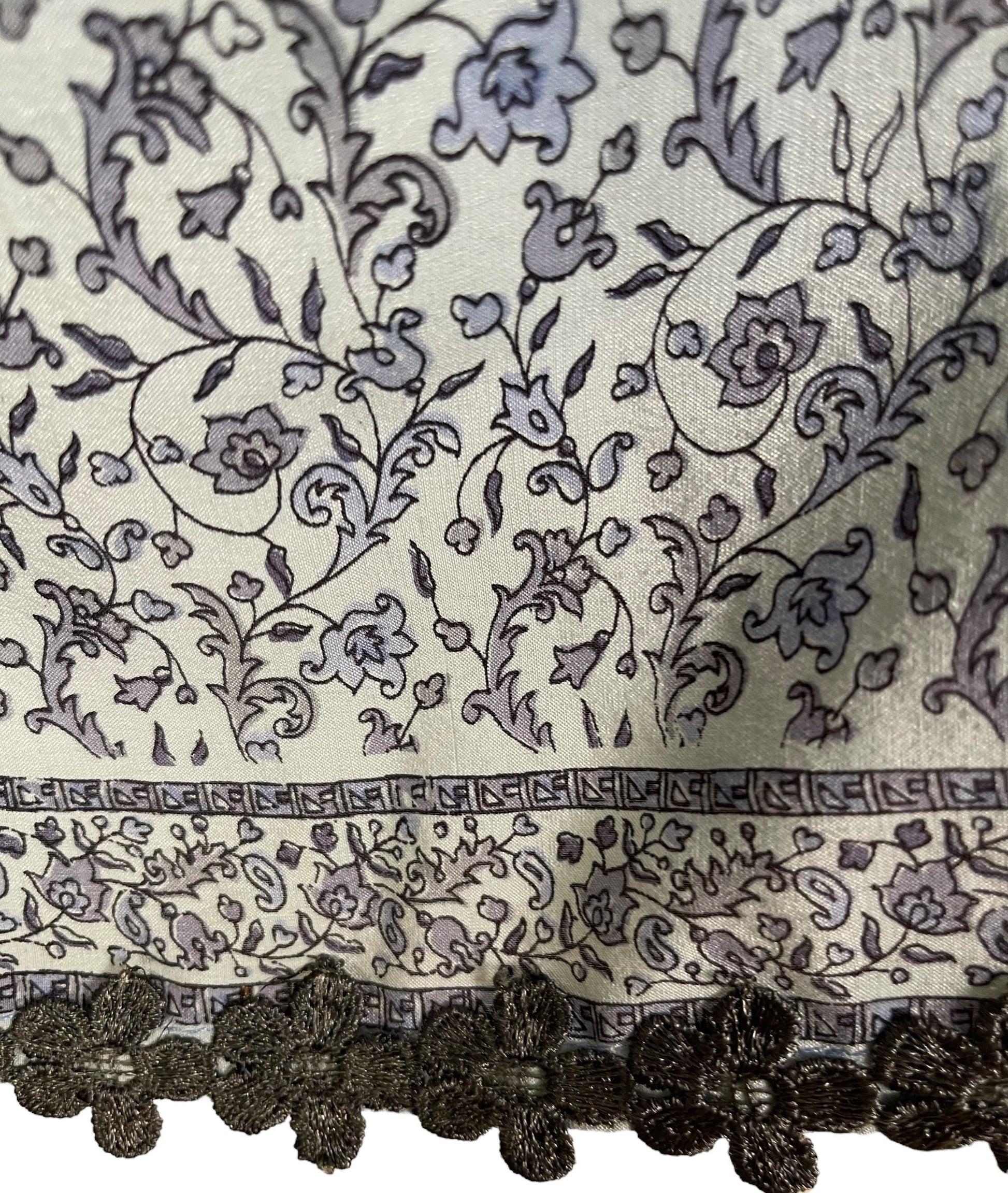 In Eastern philosophy, an Avatar is an incarnation that teaches how to evolve virtues of the past into the present. The Pure Upcycled Silk Avatar Collection is made from vintage pure silk saris, chosen and worn by women in the past to celebrate their lives.If you look very closely, you will see that the silks in this collection show some of the character of their previous incarnations through the appliqués that have been lovingly applied to bring new life to the fabric. This piece is a reminder that we are part of a collective journey to which we all add a little something.