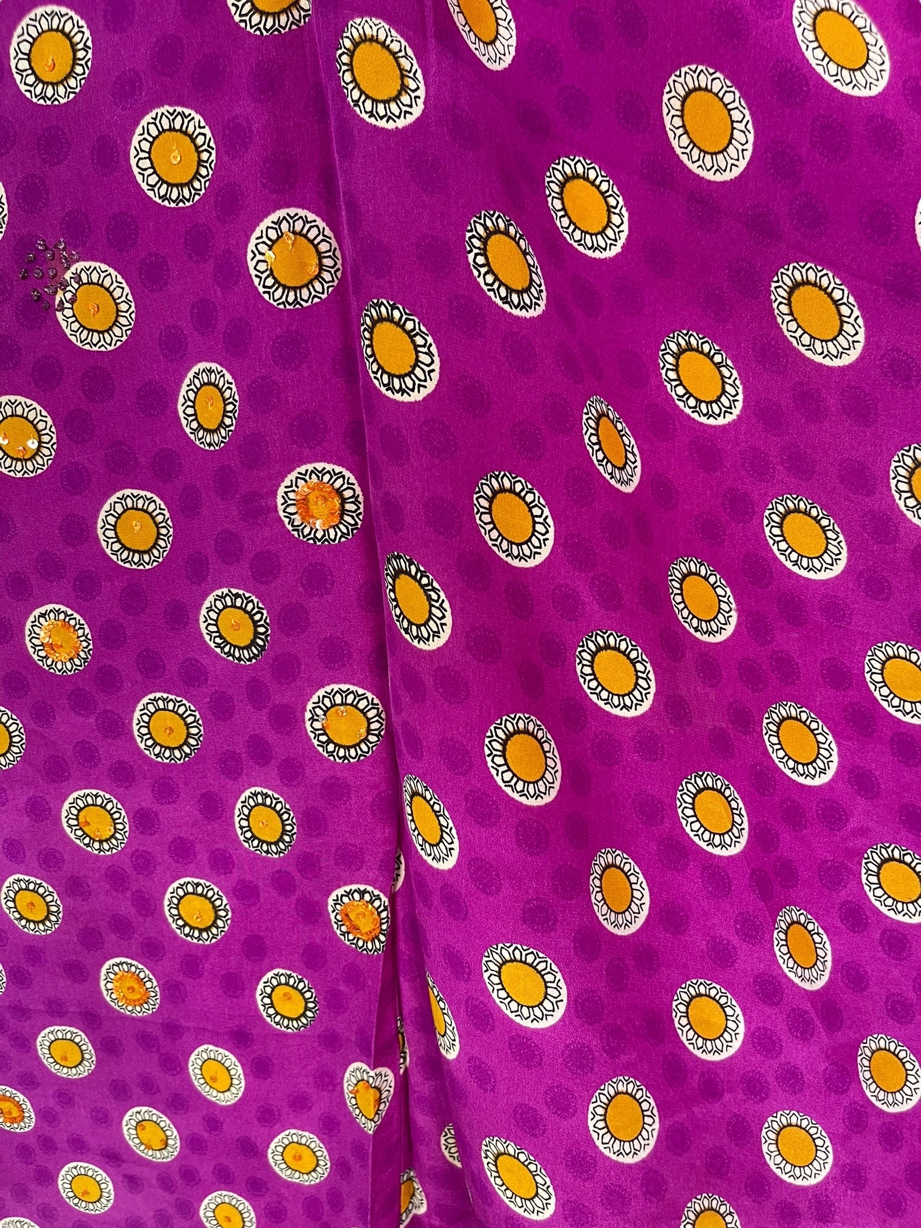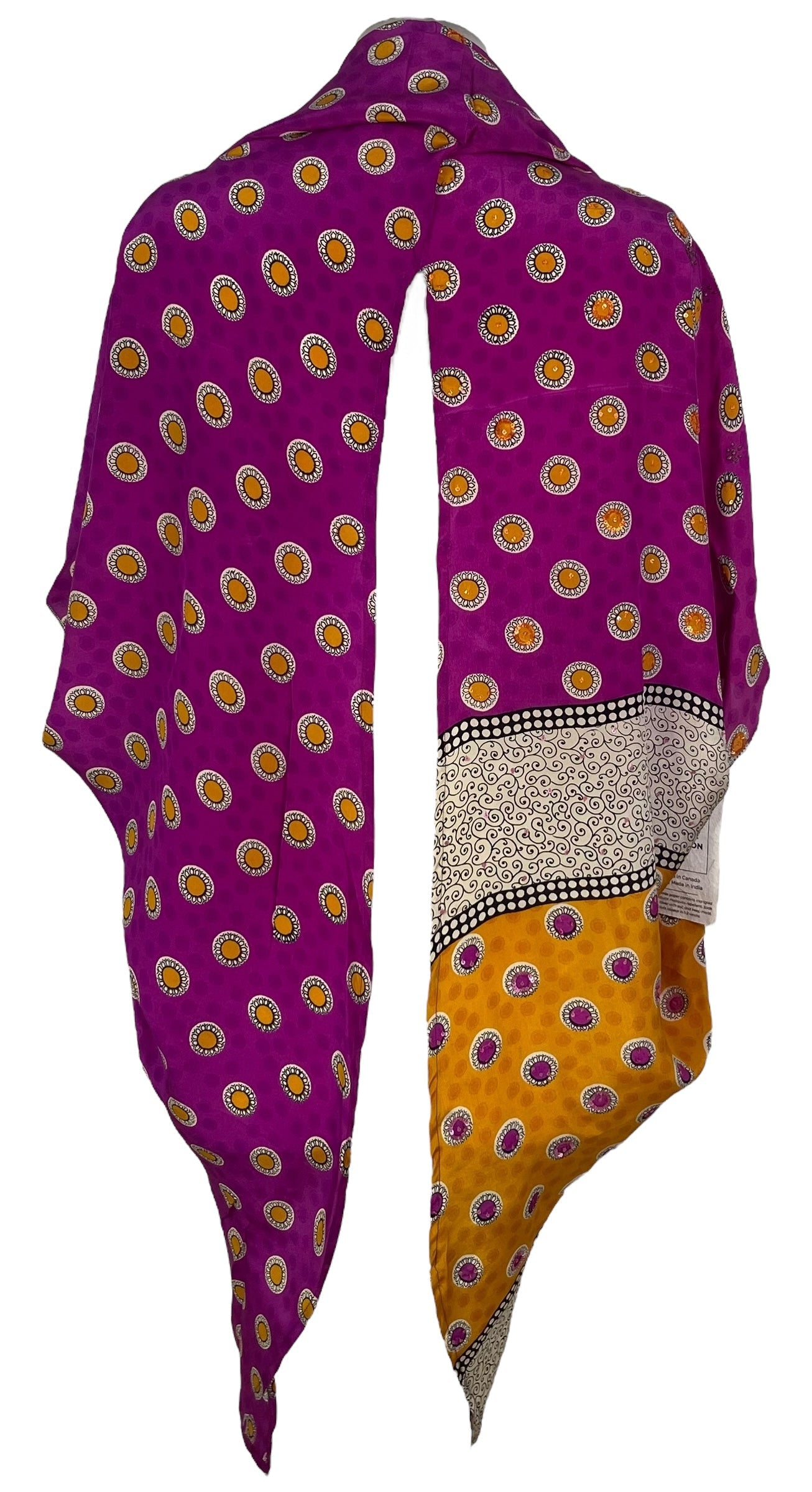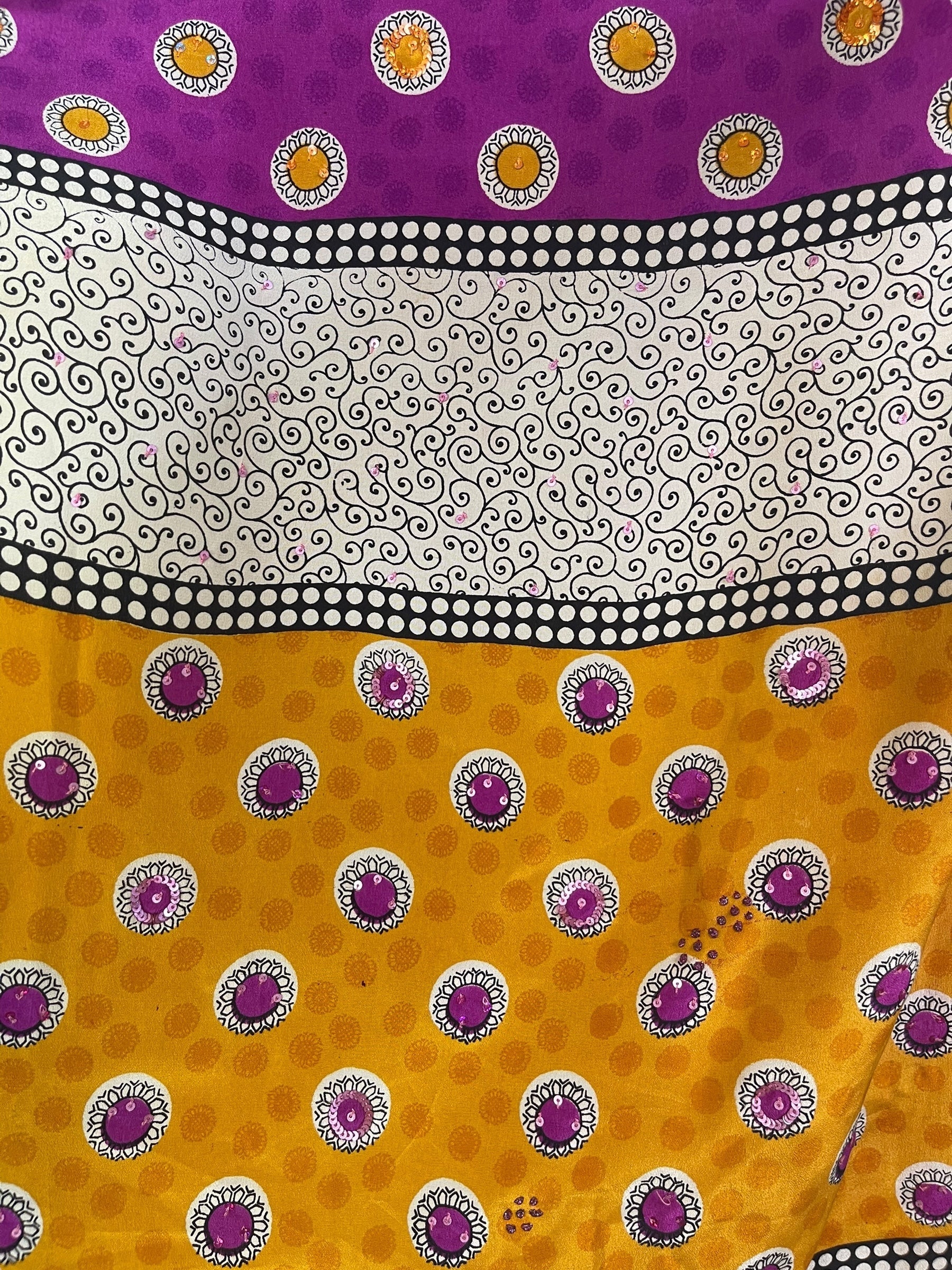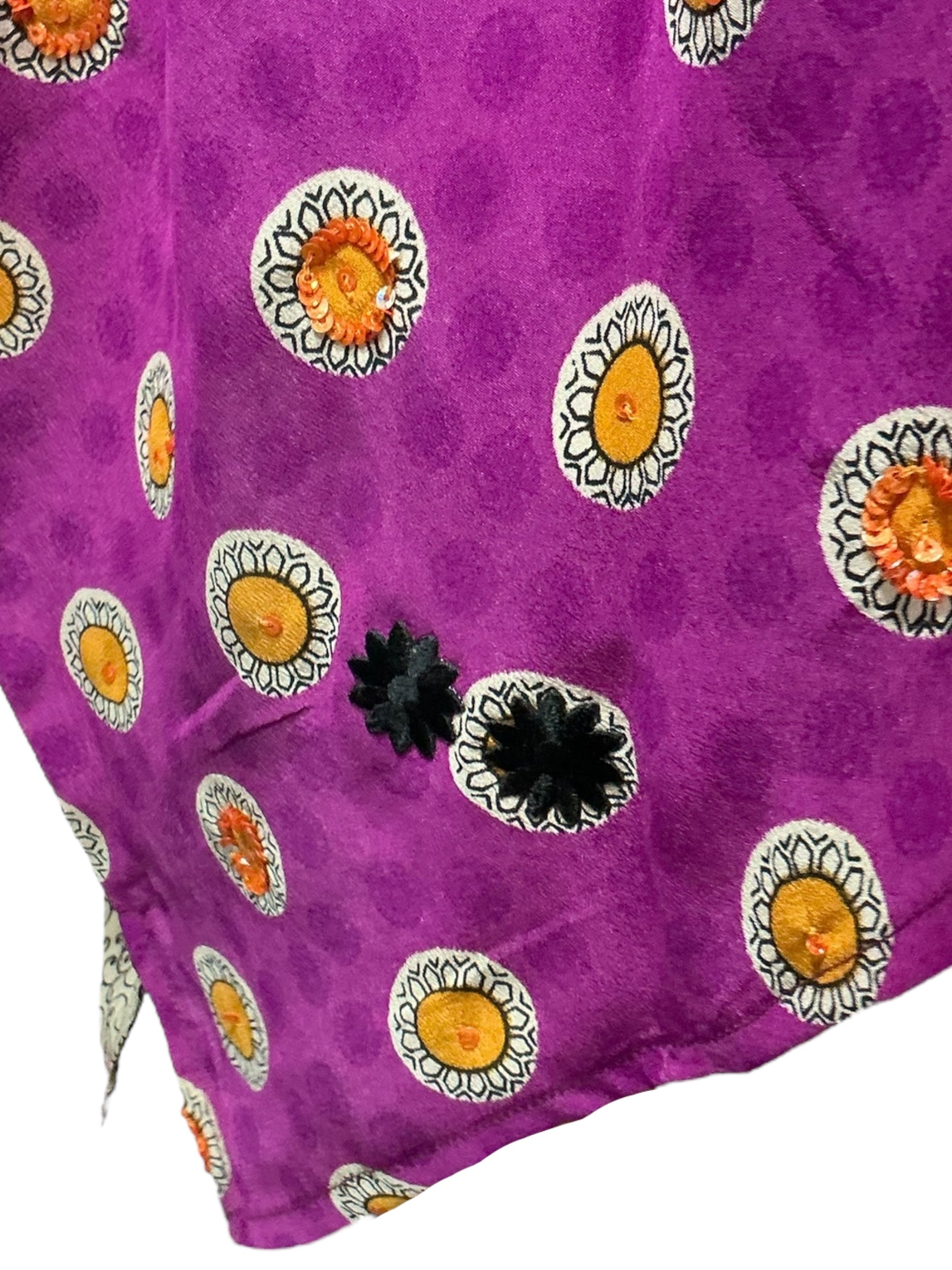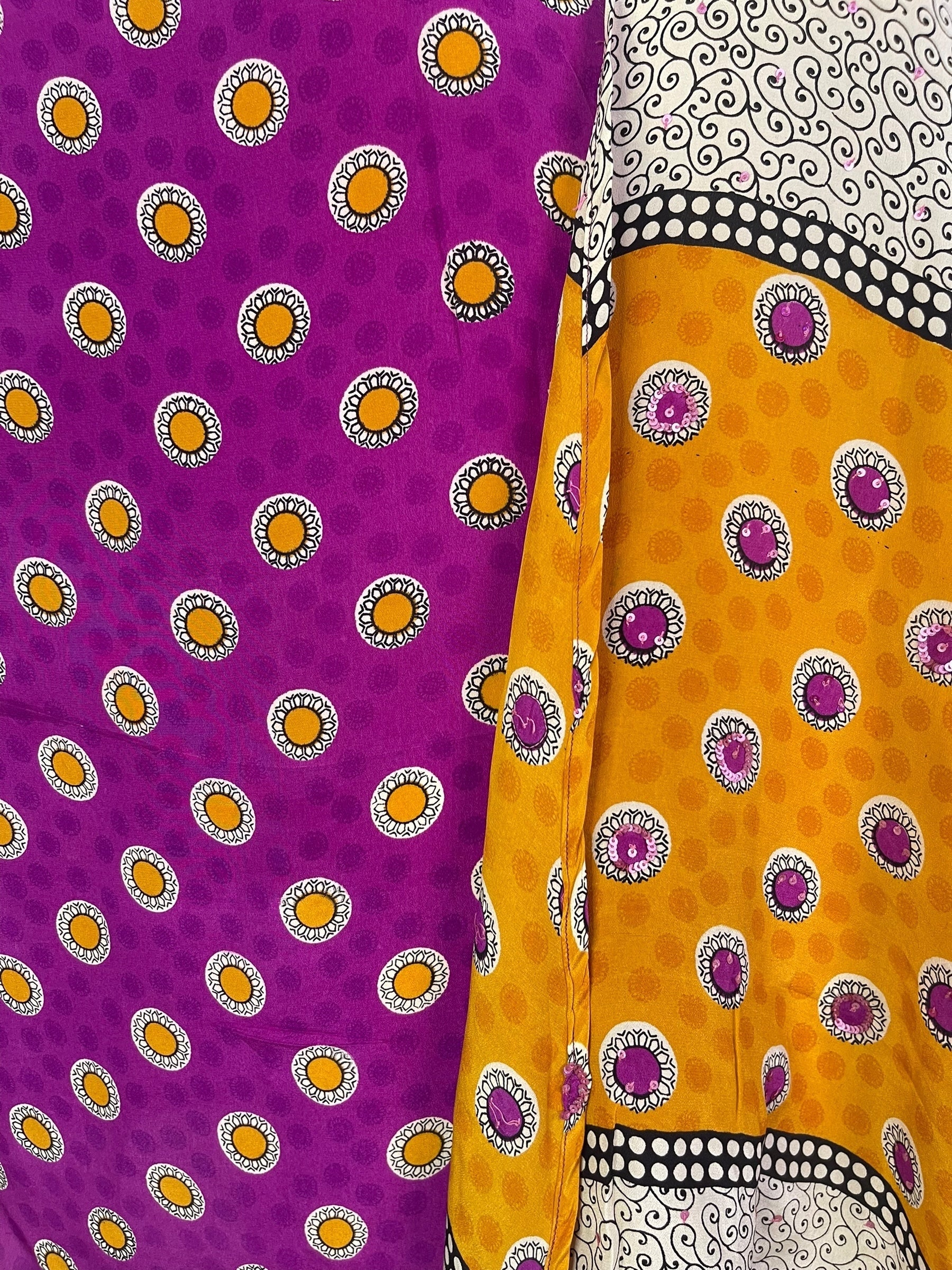 In Eastern philosophy, an Avatar is an incarnation that teaches how to evolve virtues of the past into the present. The Pure Upcycled Silk Avatar Collection is made from vintage pure silk saris, chosen and worn by women in the past to celebrate their lives.If you look very closely, you will see that the silks in this collection show some of the character of their previous incarnations through the appliqués that have been lovingly applied to bring new life to the fabric. This piece is a reminder that we are part of a collective journey to which we all add a little something.