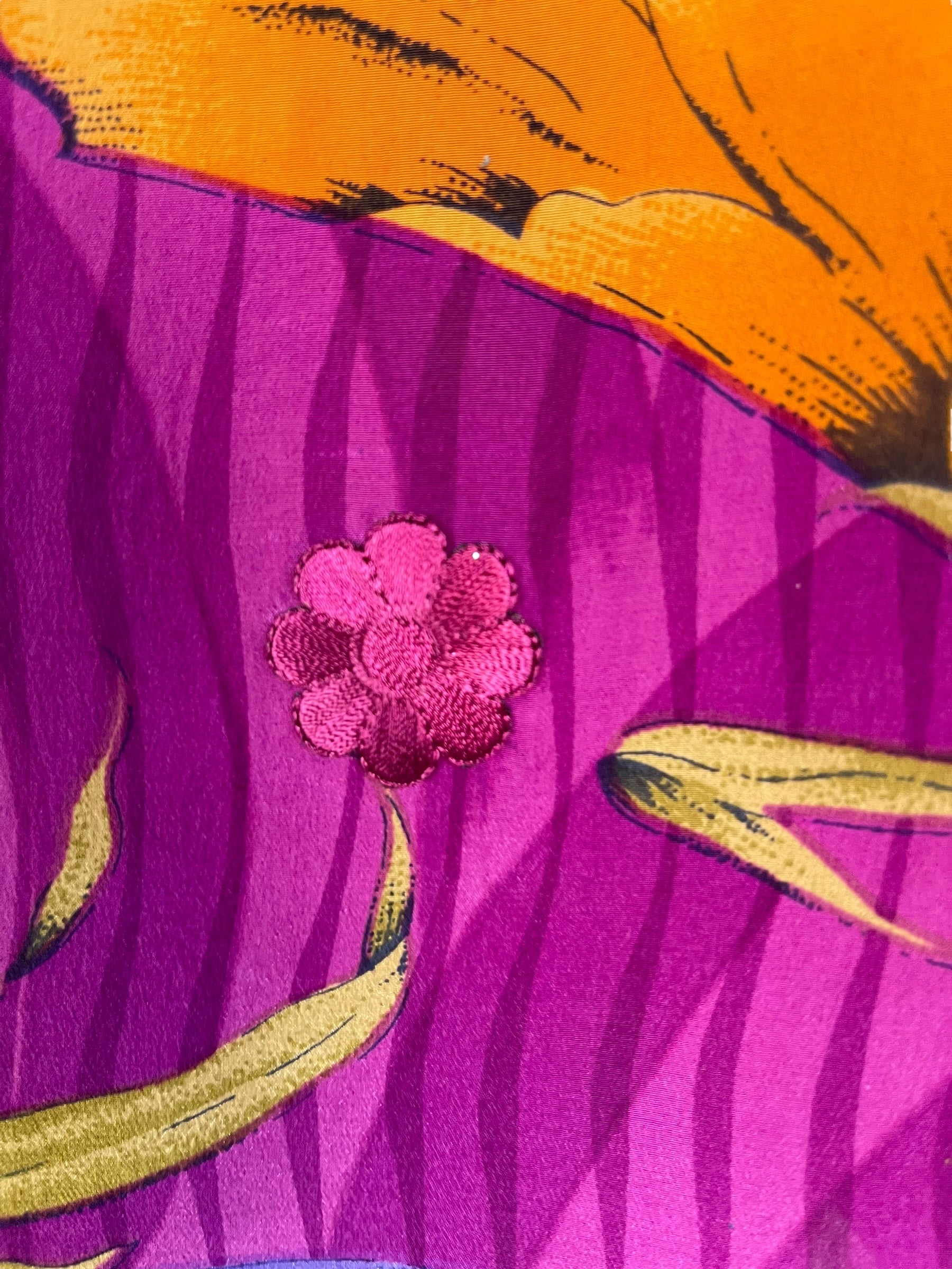 If you look very closely, you will see that the silks in this collection show some of the character of their previous incarnations through the appliqués that have been lovingly applied to bring new life to the fabric. This piece is a reminder that we are part of a collective journey to which we all add a little something.