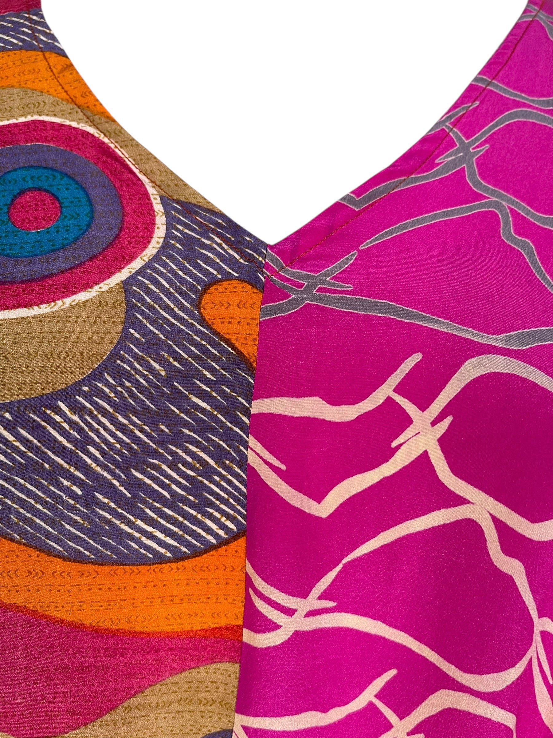 In Eastern philosophy, an Avatar is an incarnation that teaches how to evolve virtues of the past into the present. The Pure Upcycled Silk Avatar Collection is made from vintage pure silk saris, chosen and worn by women in the past to celebrate their lives.If you look very closely, you will see that the silks in this collection show some of the character of their previous incarnations through the appliqués that have been lovingly applied to bring new life to the fabric. This piece is a reminder that we are part of a collective journey to which we all add a little something.