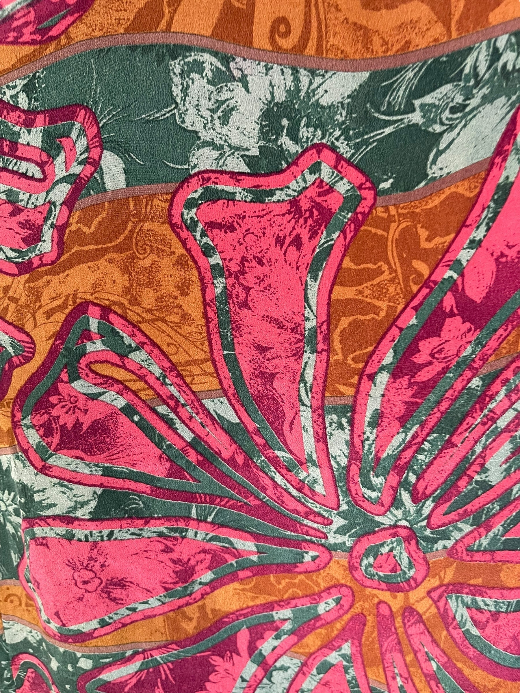 In Eastern philosophy, an Avatar is an incarnation that teaches how to evolve virtues of the past into the present. The Pure Upcycled Silk Avatar Collection is made from vintage pure silk saris, chosen and worn by women in the past to celebrate their lives.If you look very closely, you will see that the silks in this collection show some of the character of their previous incarnations through the appliqués that have been lovingly applied to bring new life to the fabric. This piece is a reminder that we are part of a collective journey to which we all add a little something.