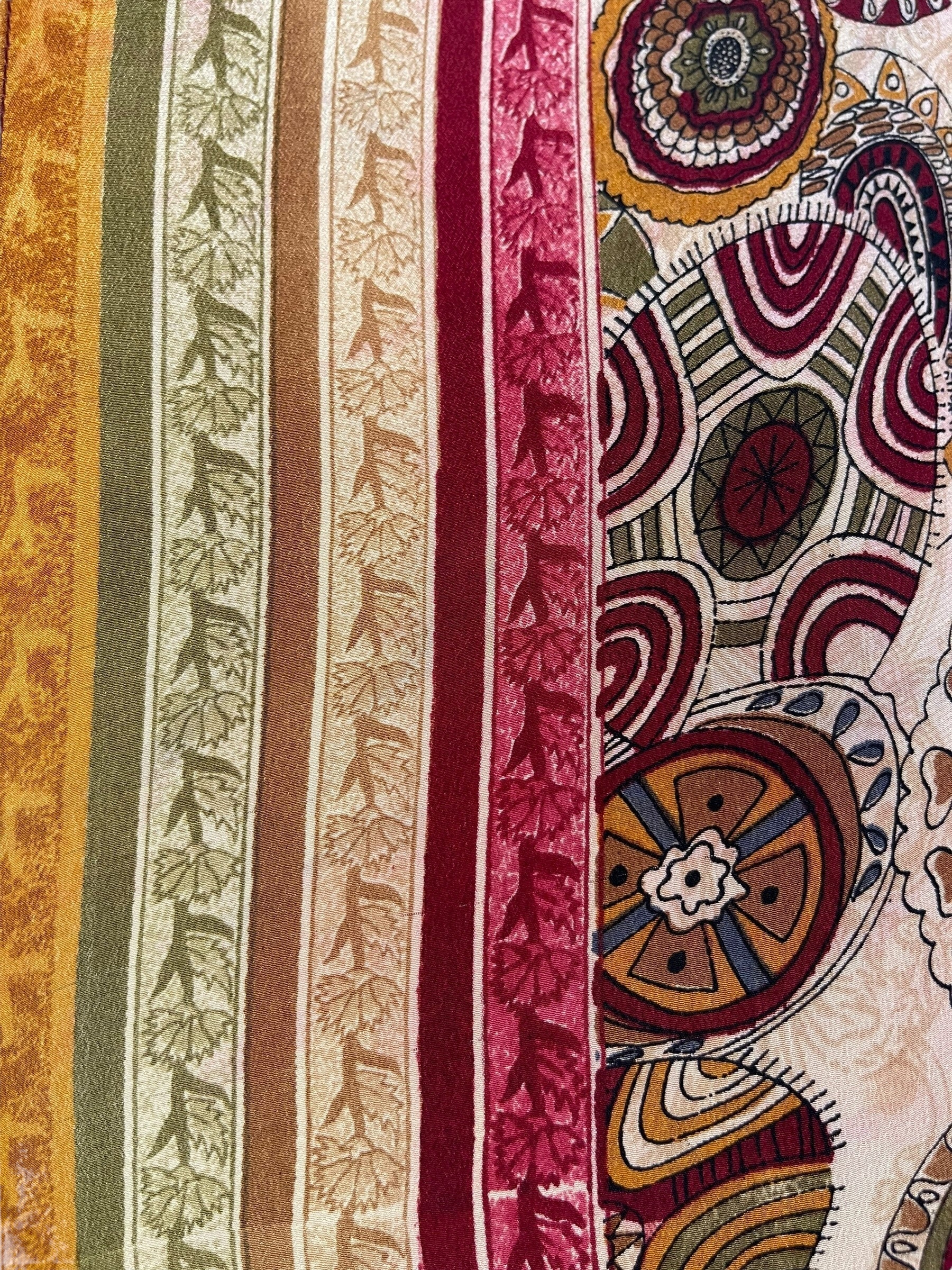 In Eastern philosophy, an Avatar is an incarnation that teaches how to evolve virtues of the past into the present. The Pure Upcycled Silk Avatar Collection is made from vintage pure silk saris, chosen and worn by women in the past to celebrate their lives.If you look very closely, you will see that the silks in this collection show some of the character of their previous incarnations through the appliqués that have been lovingly applied to bring new life to the fabric. This piece is a reminder that we are part of a collective journey to which we all add a little something.