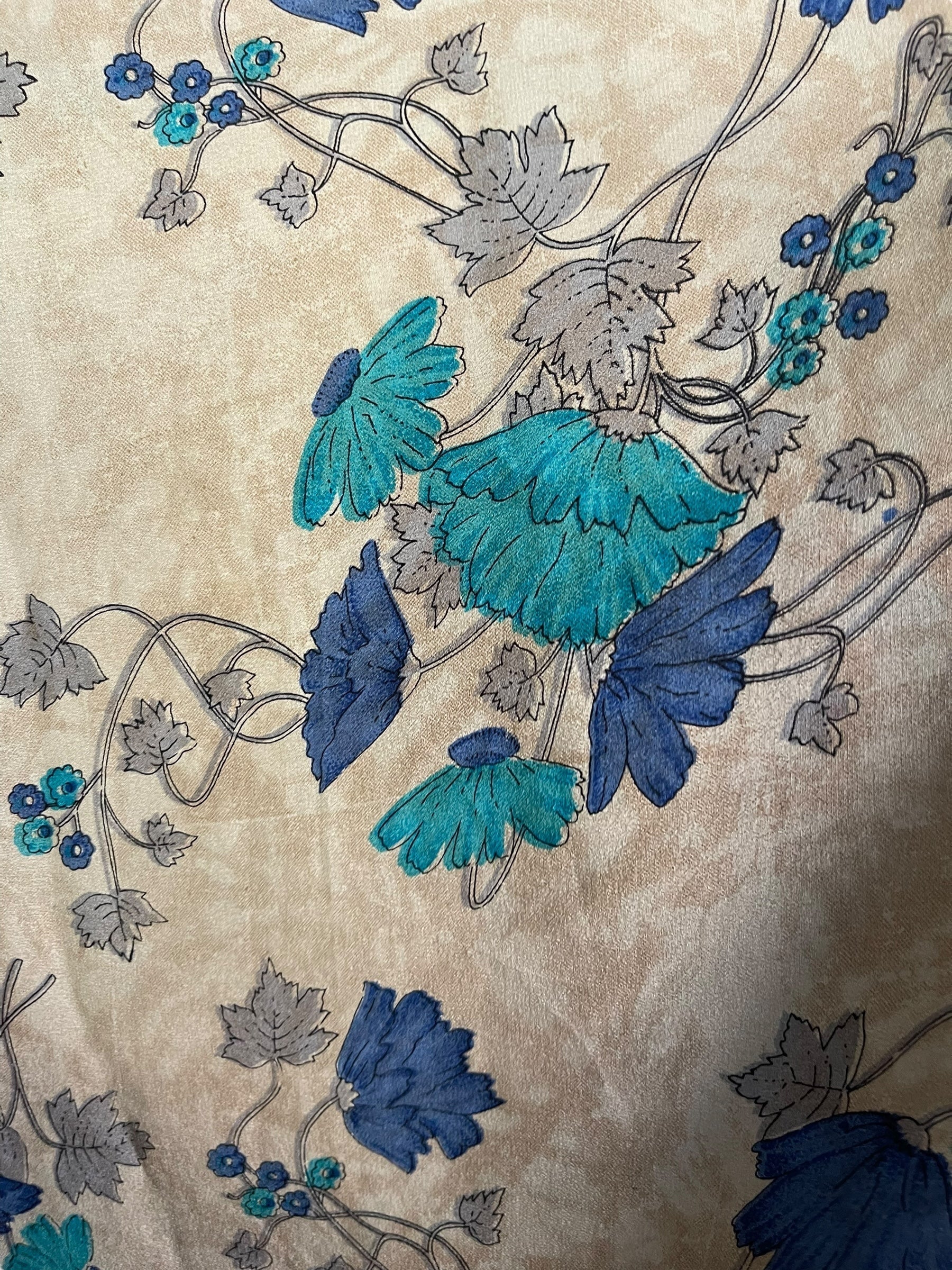 If you look very closely, you will see that the silks in this collection show some of the character of their previous incarnations through the appliqués that have been lovingly applied to bring new life to the fabric. This piece is a reminder that we are part of a collective journey to which we all add a little something.
