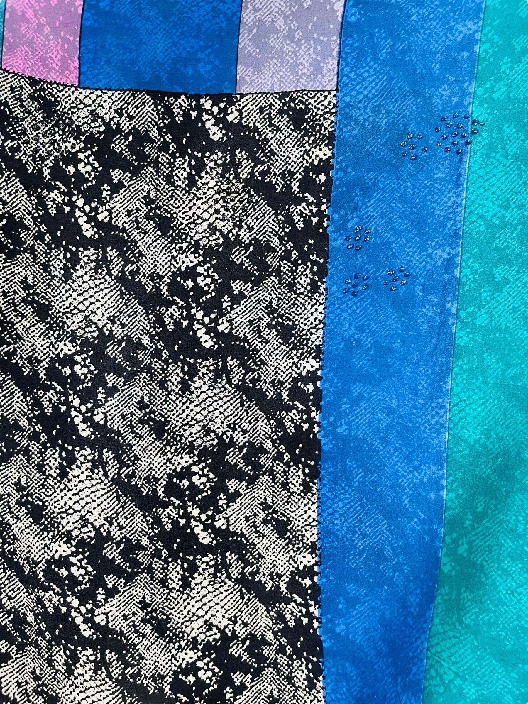 In Eastern philosophy, an Avatar is an incarnation that teaches how to evolve virtues of the past into the present. The Pure Upcycled Silk Avatar Collection is made from vintage pure silk saris, chosen and worn by women in the past to celebrate their lives.If you look very closely, you will see that the silks in this collection show some of the character of their previous incarnations through the appliqués that have been lovingly applied to bring new life to the fabric. This piece is a reminder that we are part of a collective journey to which we all add a little something.
