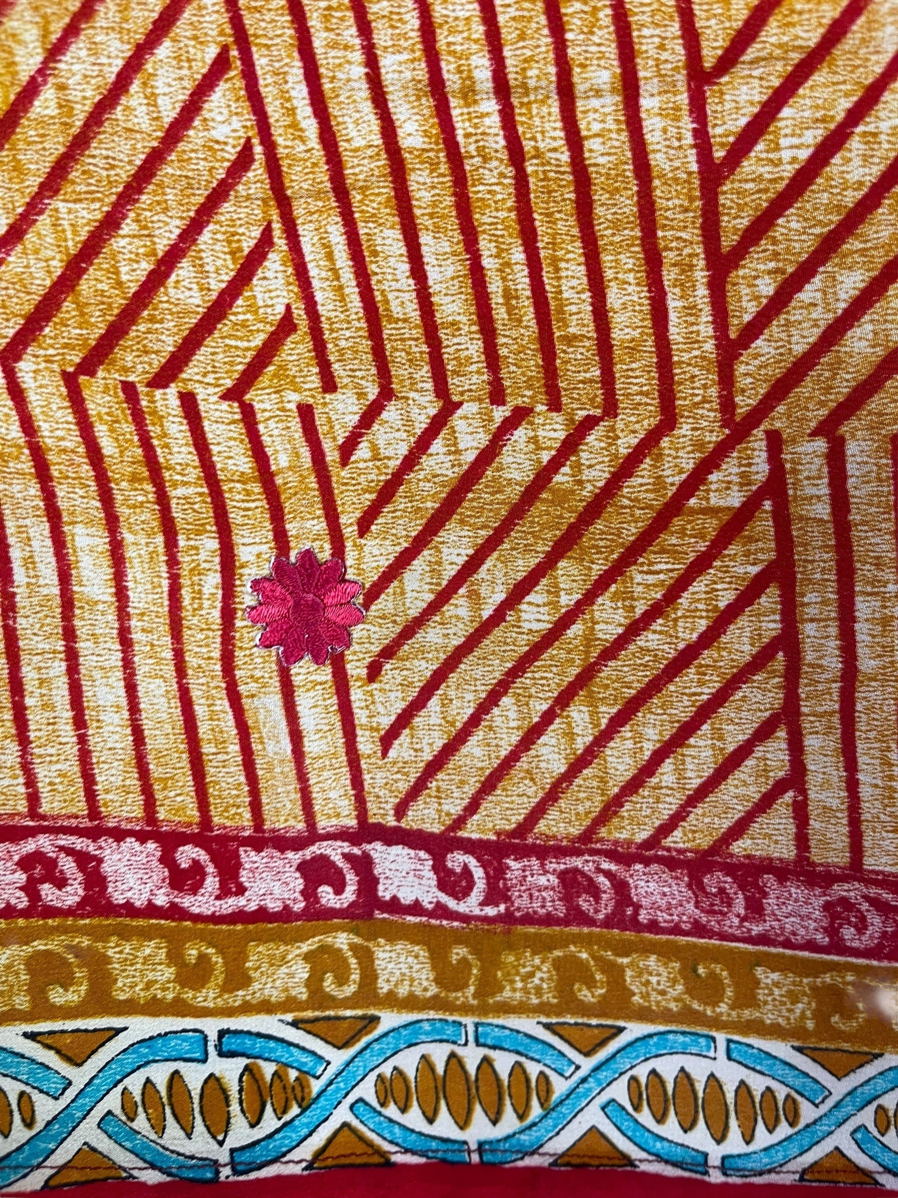 In Eastern philosophy, an Avatar is an incarnation that teaches how to evolve virtues of the past into the present. The Pure Upcycled Silk Avatar Collection is made from vintage pure silk saris, chosen and worn by women in the past to celebrate their lives.If you look very closely, you will see that the silks in this collection show some of the character of their previous incarnations through the appliqués that have been lovingly applied to bring new life to the fabric. This piece is a reminder that we are part of a collective journey to which we all add a little something.