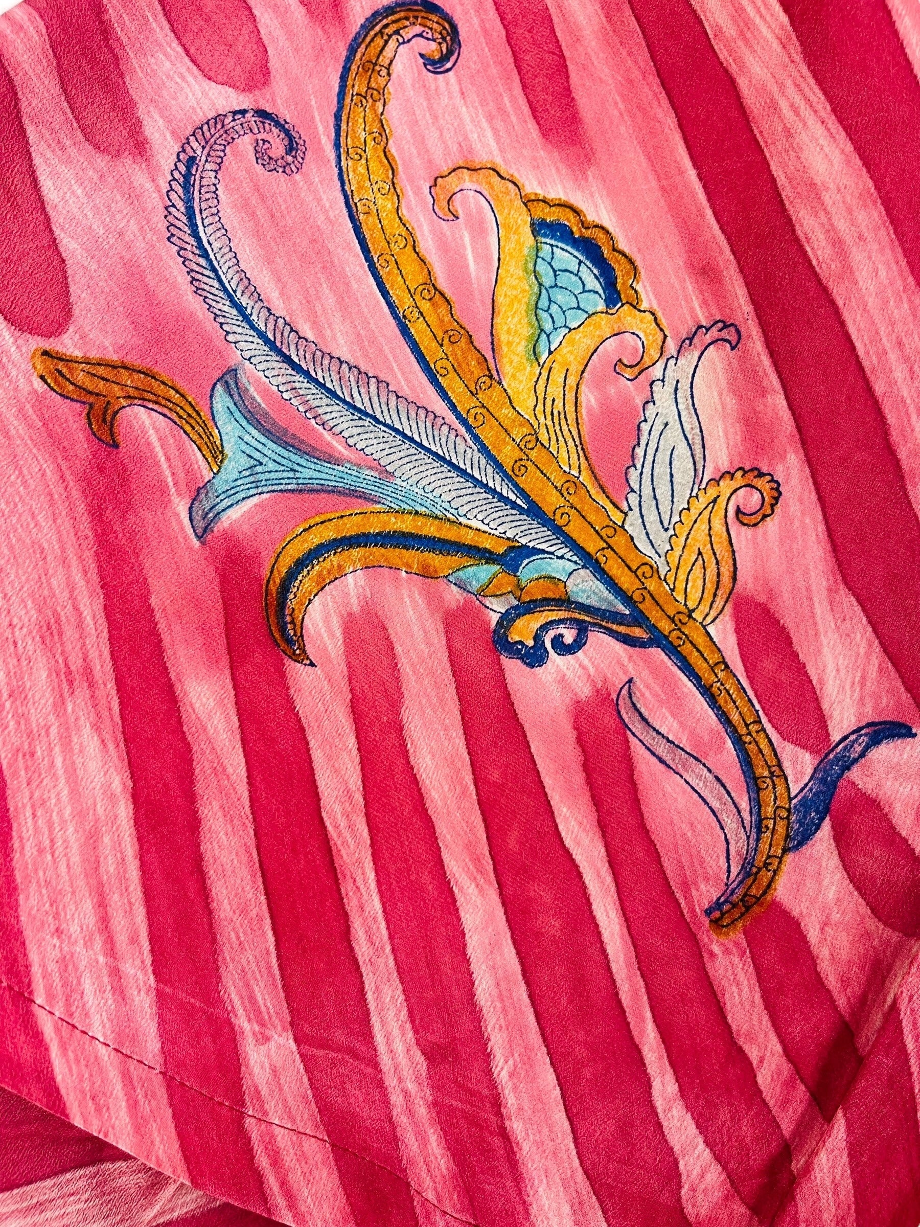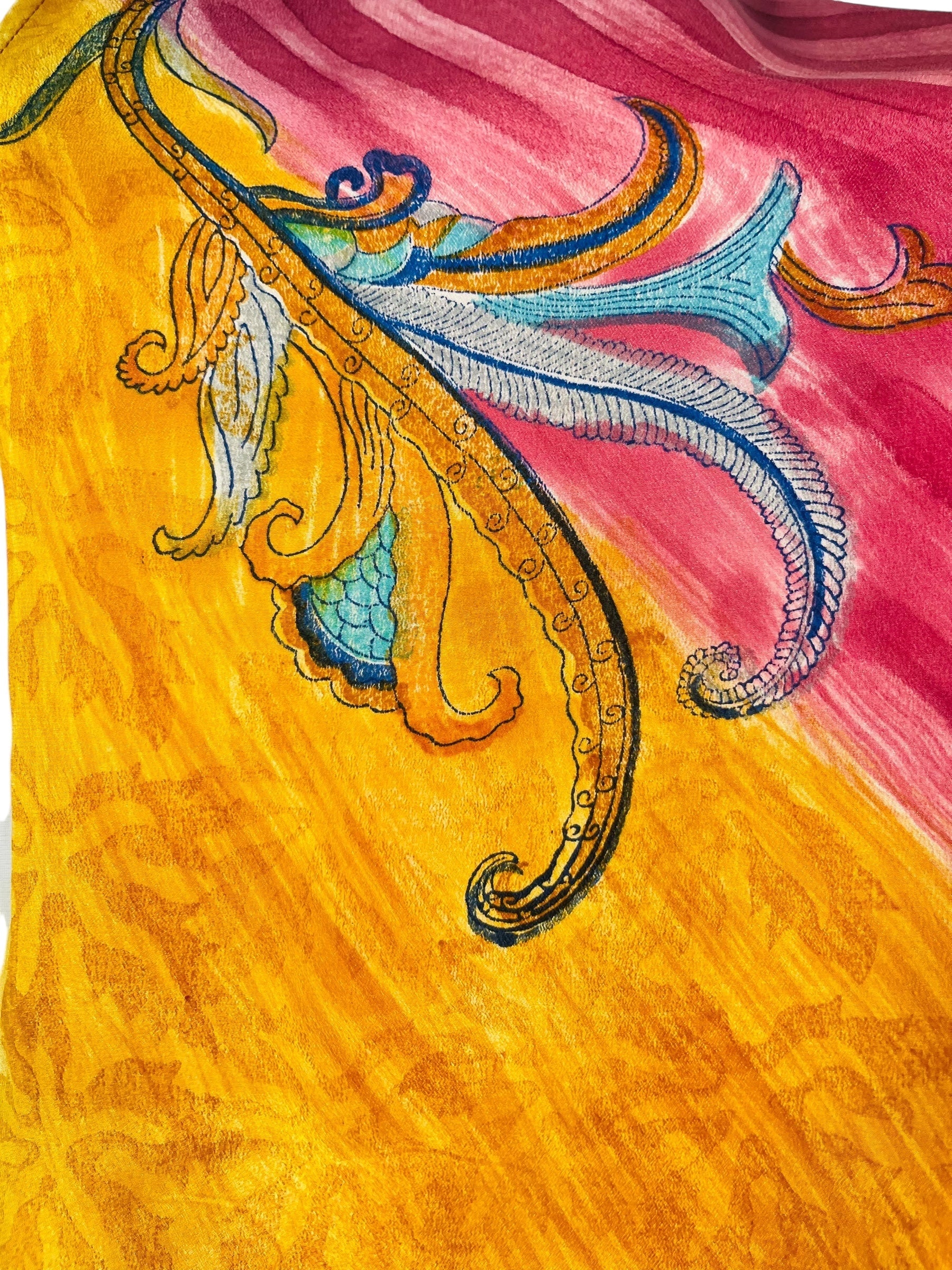 In Eastern philosophy, an Avatar is an incarnation that teaches how to evolve virtues of the past into the present. The Pure Upcycled Silk Avatar Collection is made from vintage pure silk saris, chosen and worn by women in the past to celebrate their lives.If you look very closely, you will see that the silks in this collection show some of the character of their previous incarnations through the appliqués that have been lovingly applied to bring new life to the fabric. This piece is a reminder that we are part of a collective journey to which we all add a little something.