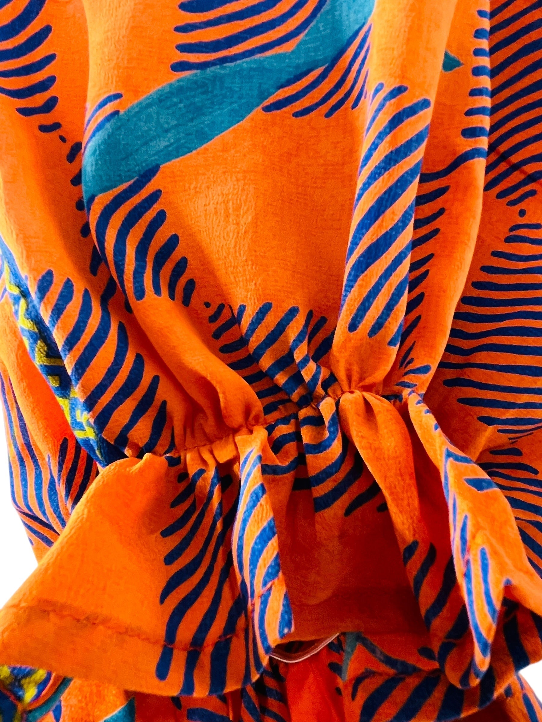 If you look very closely, you will see that the silks in this collection show some of the character of their previous incarnations through the appliqués that have been lovingly applied to bring new life to the fabric. This piece is a reminder that we are part of a collective journey to which we all add a little something.