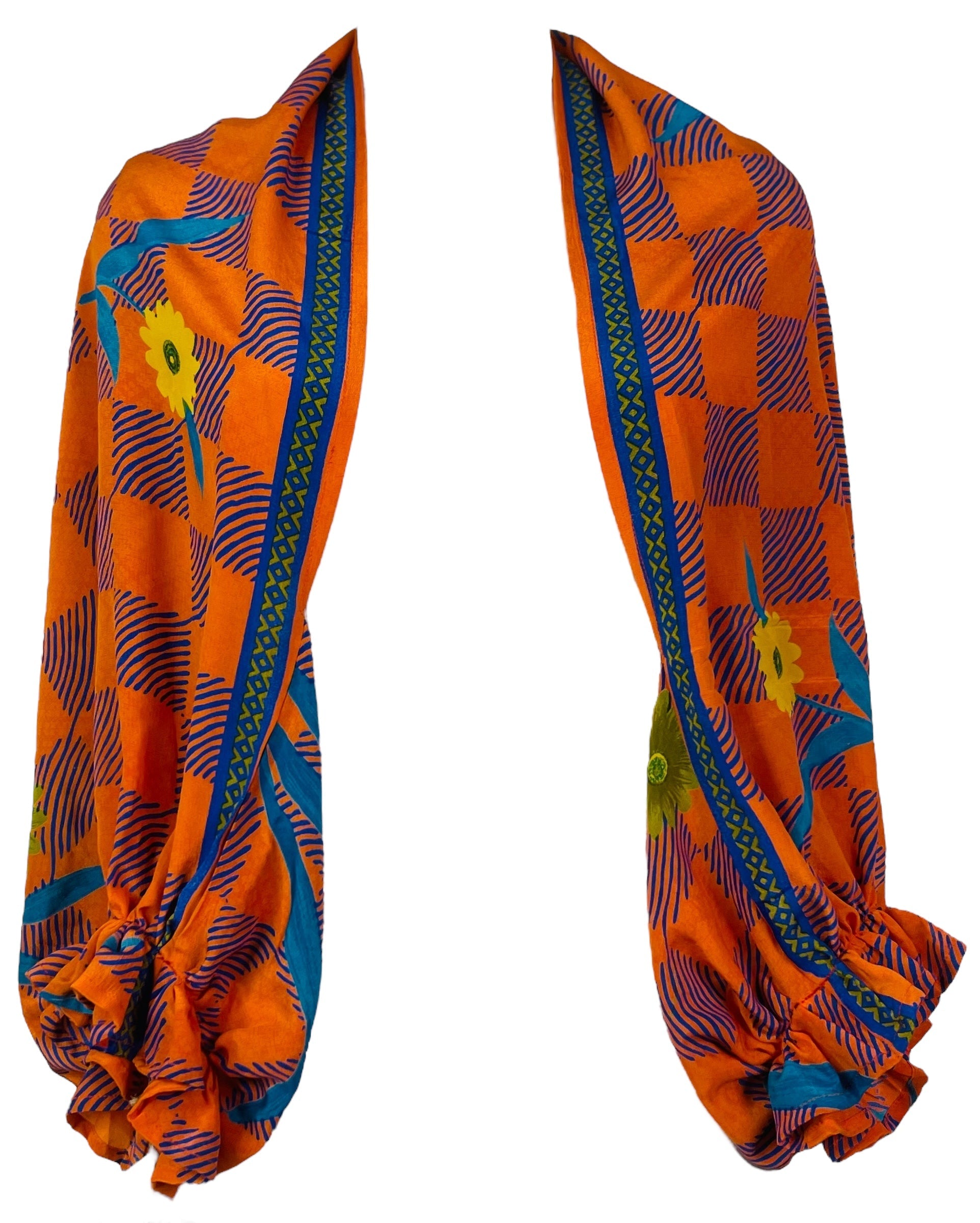 In Eastern philosophy, an Avatar is an incarnation that teaches how to evolve virtues of the past into the present. The Pure Upcycled Silk Avatar Collection is made from vintage pure silk saris, chosen and worn by women in the past to celebrate their lives.If you look very closely, you will see that the silks in this collection show some of the character of their previous incarnations through the appliqués that have been lovingly applied to bring new life to the fabric. This piece is a reminder that we are part of a collective journey to which we all add a little something.