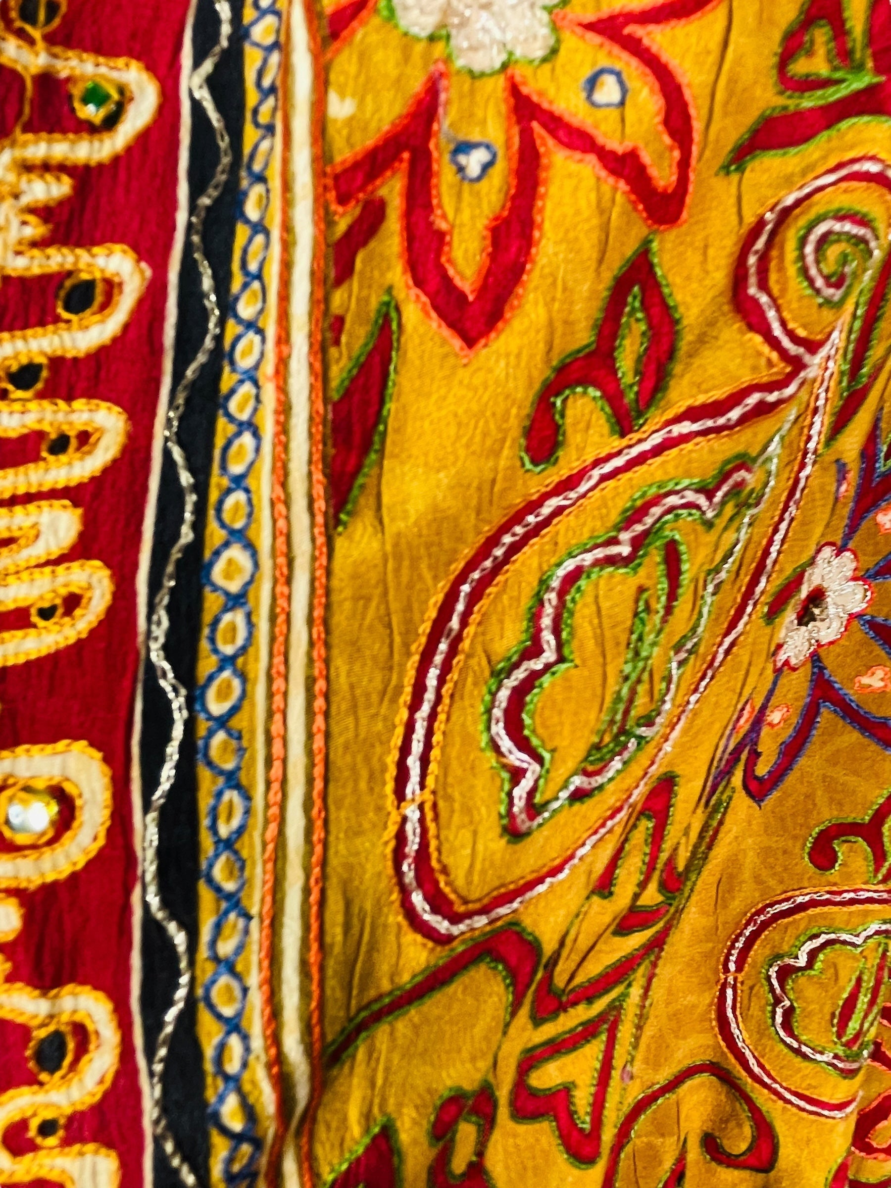 If you look very closely, you will see that the silks in this collection show some of the character of their previous incarnations through the appliqués that have been lovingly applied to bring new life to the fabric. This piece is a reminder that we are part of a collective journey to which we all add a little something.