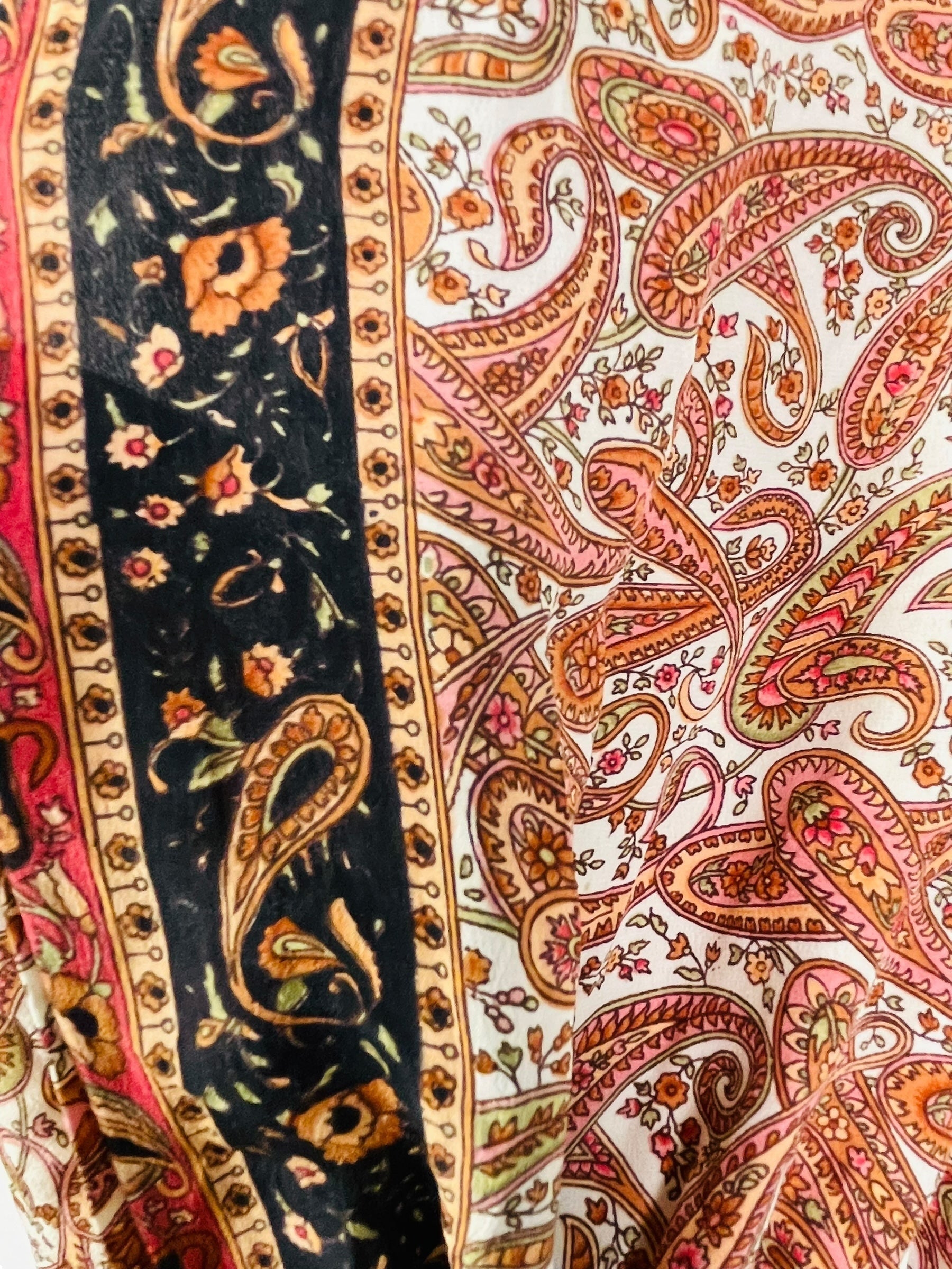 If you look very closely, you will see that the silks in this collection show some of the character of their previous incarnations through the appliqués that have been lovingly applied to bring new life to the fabric. This piece is a reminder that we are part of a collective journey to which we all add a little something.