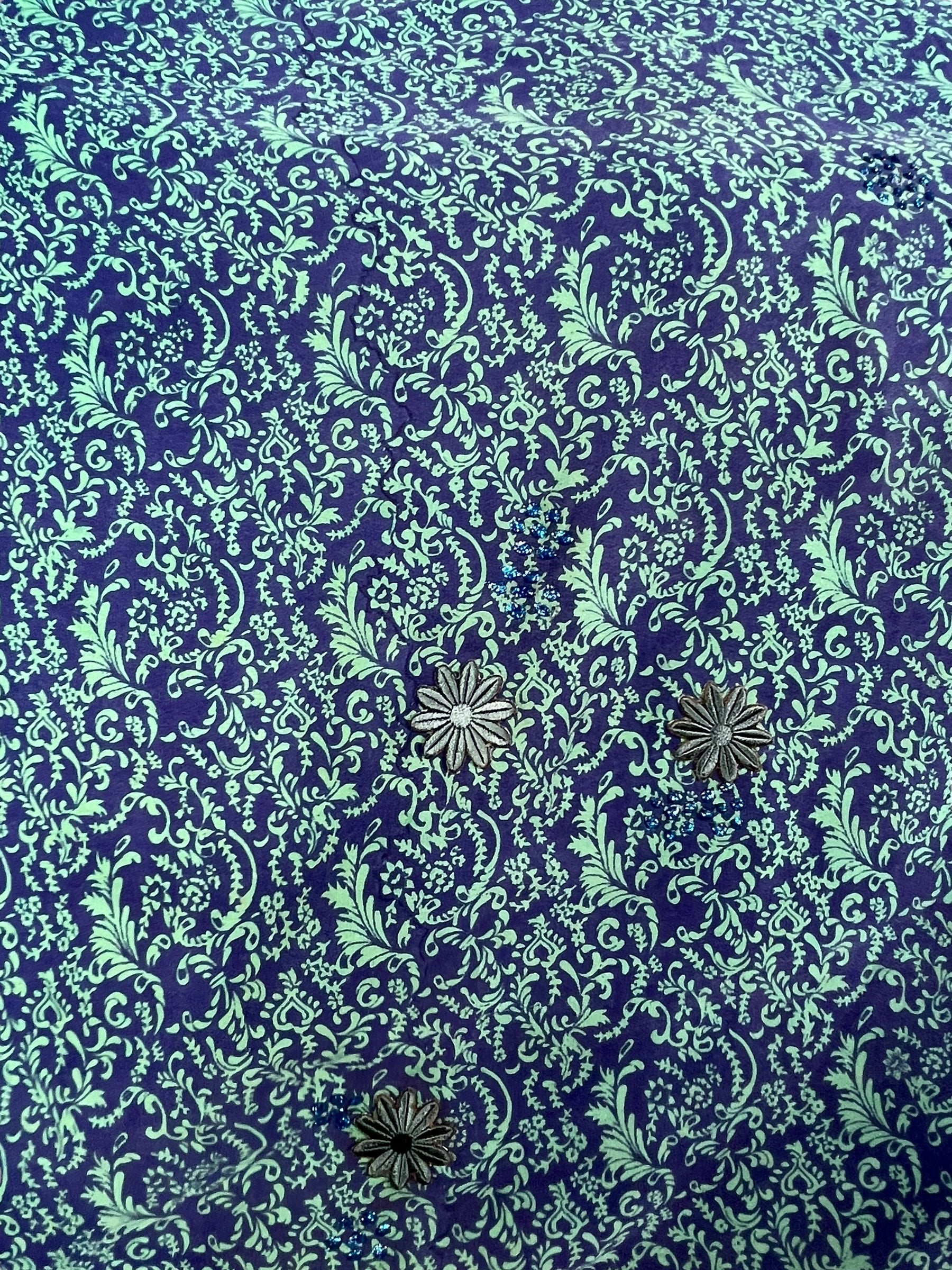 In Eastern philosophy, an Avatar is an incarnation that teaches how to evolve virtues of the past into the present. The Pure Upcycled Silk Avatar Collection is made from vintage pure silk saris, chosen and worn by women in the past to celebrate their lives.If you look very closely, you will see that the silks in this collection show some of the character of their previous incarnations through the appliqués that have been lovingly applied to bring new life to the fabric. This piece is a reminder that we are part of a collective journey to which we all add a little something.