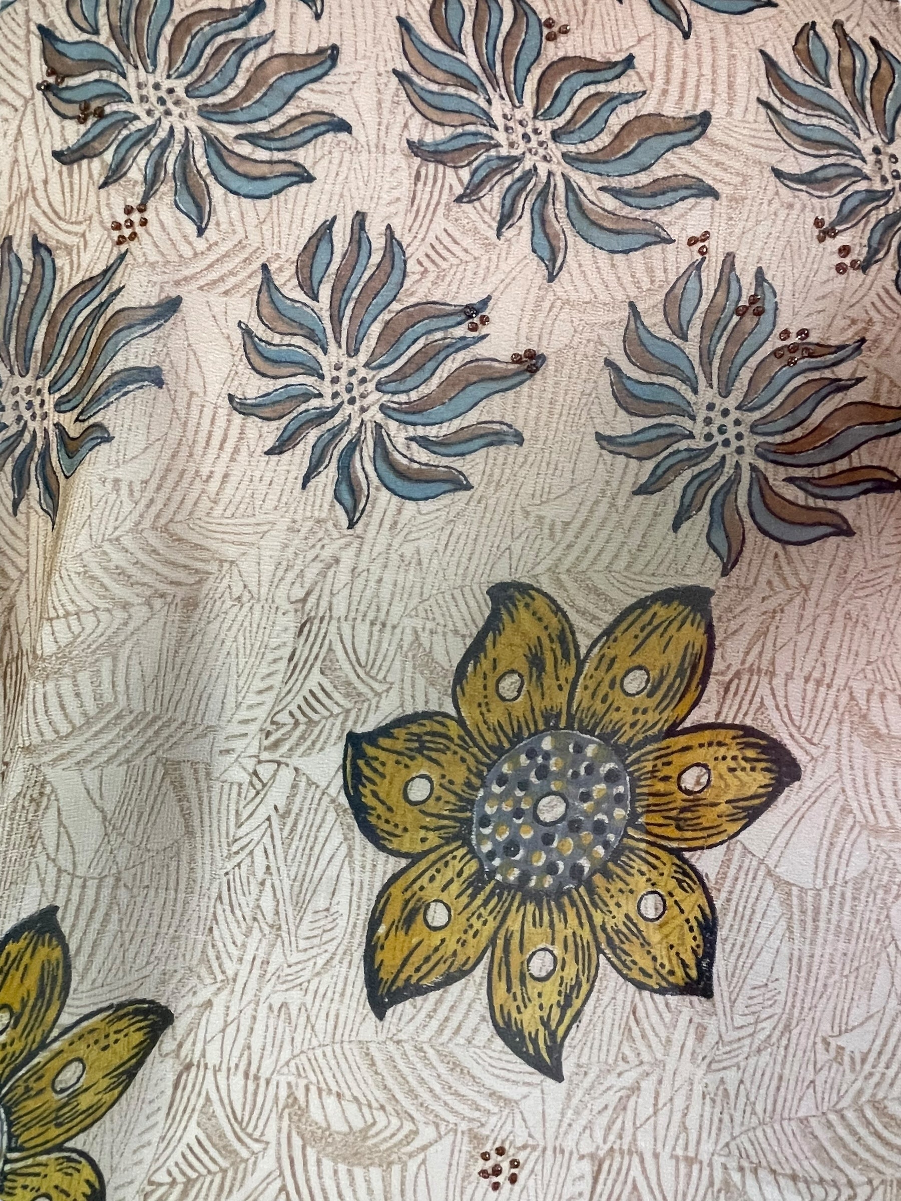 In Eastern philosophy, an Avatar is an incarnation that teaches how to evolve virtues of the past into the present. The Pure Upcycled Silk Avatar Collection is made from vintage pure silk saris, chosen and worn by women in the past to celebrate their lives.If you look very closely, you will see that the silks in this collection show some of the character of their previous incarnations through the appliqués that have been lovingly applied to bring new life to the fabric. This piece is a reminder that we are part of a collective journey to which we all add a little something.