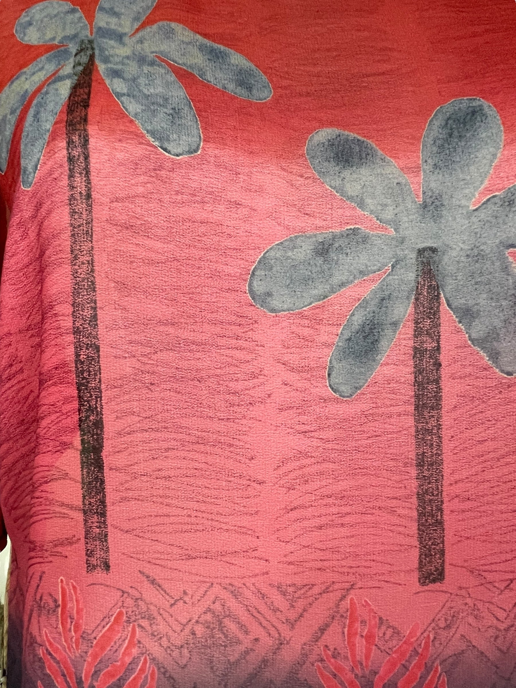 These sustainable, pure silk boxy tops are versatile and come in countless colors and prints. They look great when paired with a longer tank top and high-waisted pants, or beneath a coordinating kimono-sleeved duster, short kimono-sleeved jacket, or silk poncho. These pieces are one size, best fitting sizes 2-12, but please consult the product description for exact measurements.
