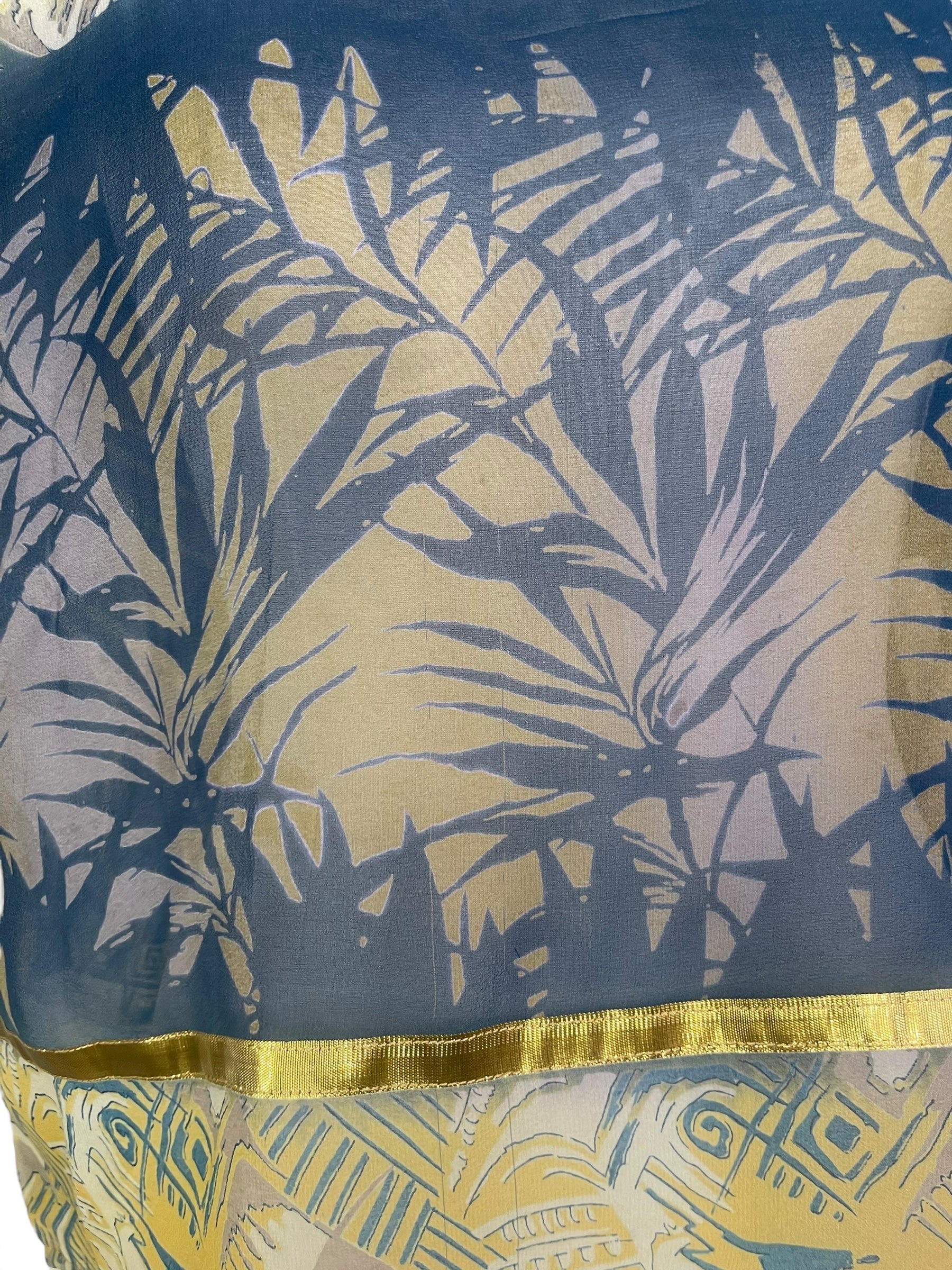 In Eastern philosophy, an Avatar is an incarnation that teaches how to evolve virtues of the past into the present. The Pure Upcycled Silk Avatar Collection is made from vintage pure silk saris, chosen and worn by women in the past to celebrate their lives.If you look very closely, you will see that the silks in this collection show some of the character of their previous incarnations through the appliqués that have been lovingly applied to bring new life to the fabric. This piece is a reminder that we are part of a collective journey to which we all add a little something.