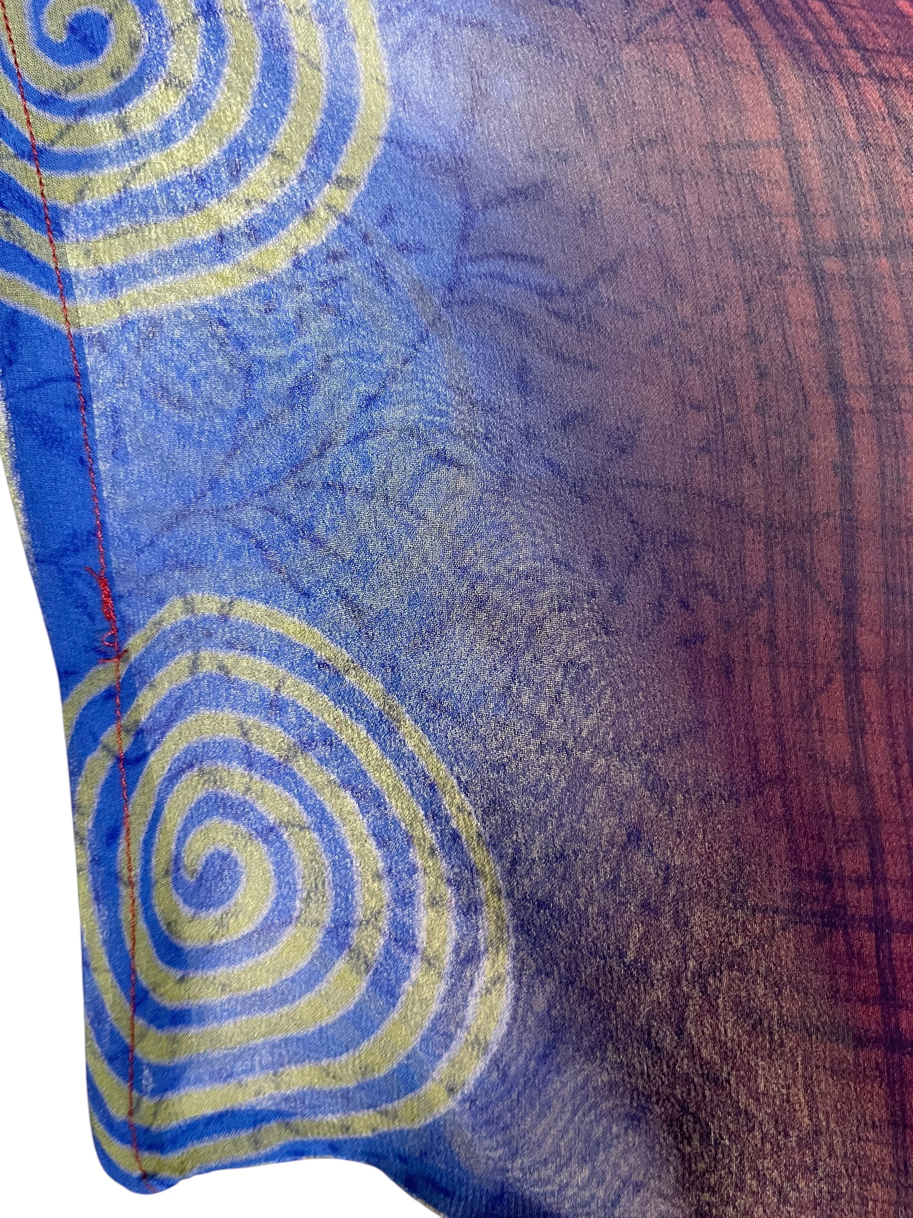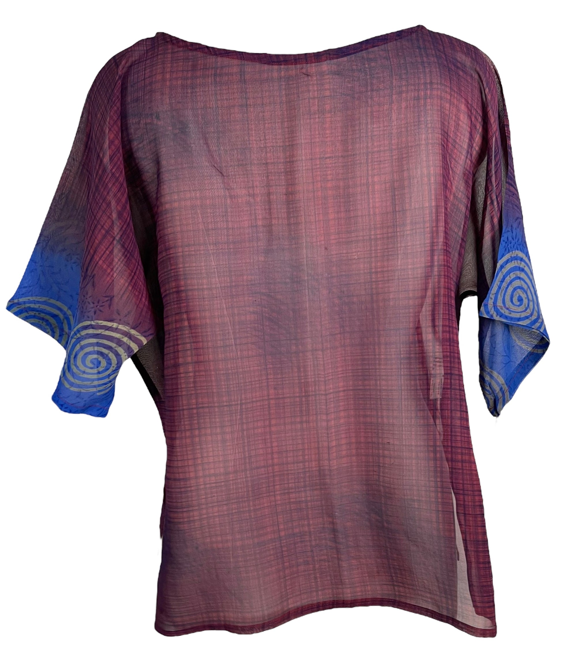 In Eastern philosophy, an Avatar is an incarnation that teaches how to evolve virtues of the past into the present. The Pure Upcycled Silk Avatar Collection is made from vintage pure silk saris, chosen and worn by women in the past to celebrate their lives.If you look very closely, you will see that the silks in this collection show some of the character of their previous incarnations through the appliqués that have been lovingly applied to bring new life to the fabric. This piece is a reminder that we are part of a collective journey to which we all add a little something.
