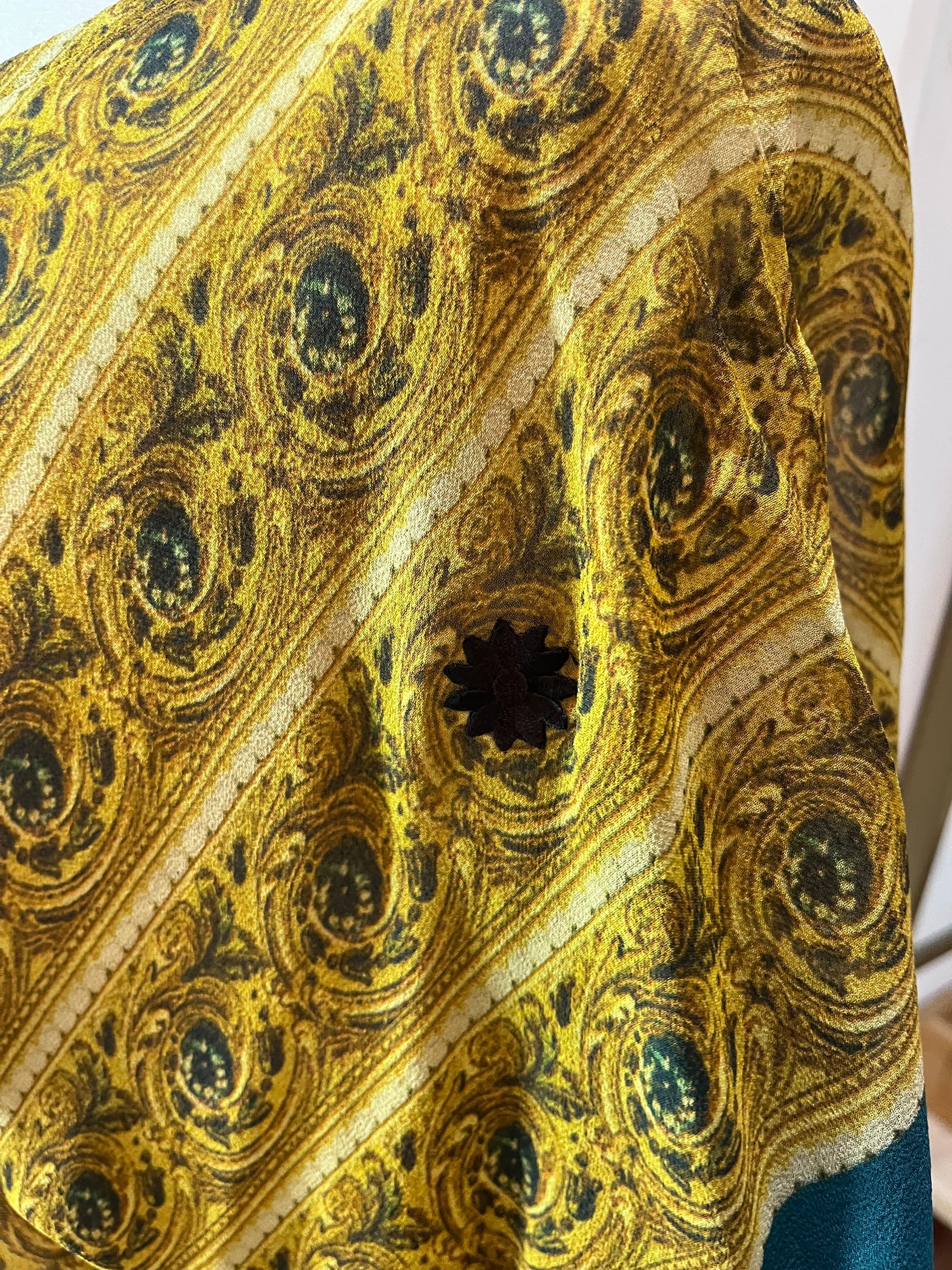 In Eastern philosophy, an Avatar is an incarnation that teaches how to evolve virtues of the past into the present. The Pure Upcycled Silk Avatar Collection is made from vintage pure silk saris, chosen and worn by women in the past to celebrate their lives.If you look very closely, you will see that the silks in this collection show some of the character of their previous incarnations through the appliqués that have been lovingly applied to bring new life to the fabric. This piece is a reminder that we are part of a collective journey to which we all add a little something.