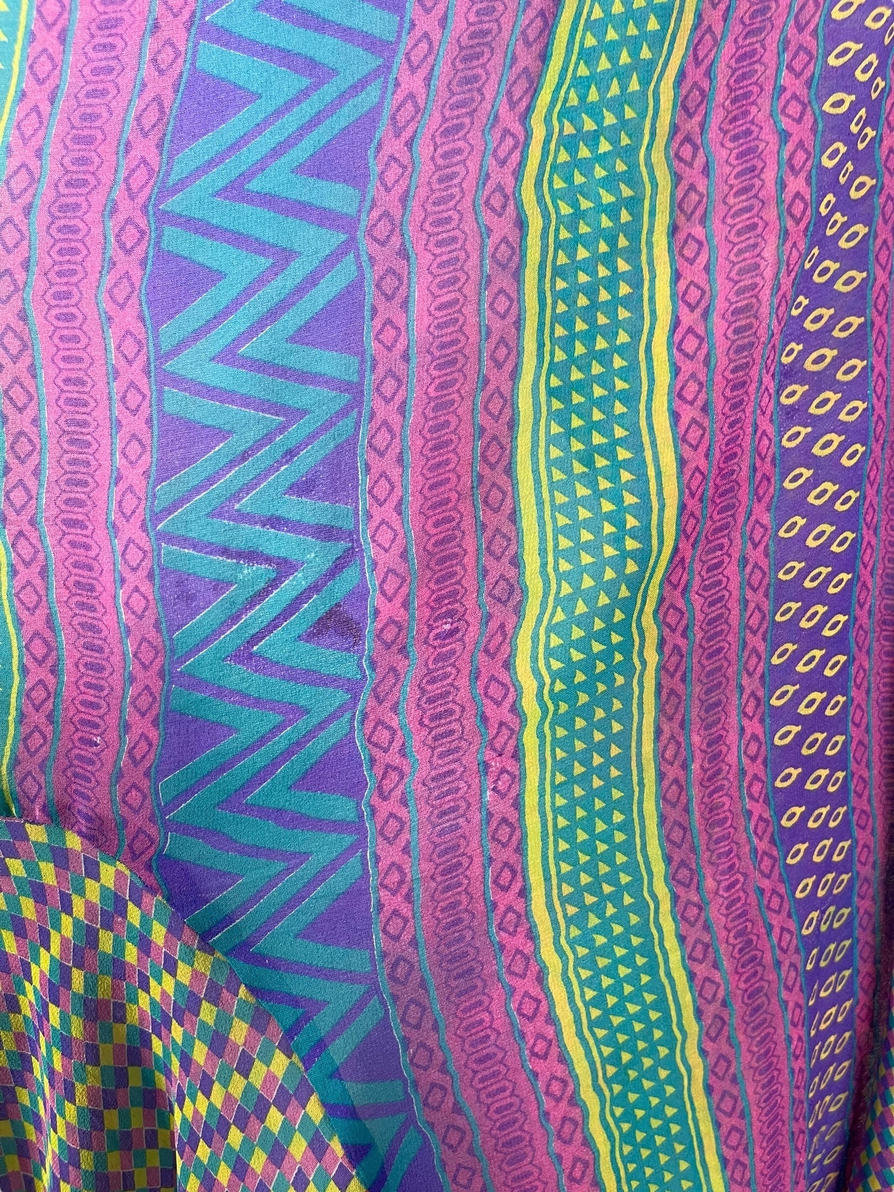 In Eastern philosophy, an Avatar is an incarnation that teaches how to evolve virtues of the past into the present. The Pure Upcycled Silk Avatar Collection is made from vintage pure silk saris, chosen and worn by women in the past to celebrate their lives.If you look very closely, you will see that the silks in this collection show some of the character of their previous incarnations through the appliqués that have been lovingly applied to bring new life to the fabric. This piece is a reminder that we are part of a collective journey to which we all add a little something.