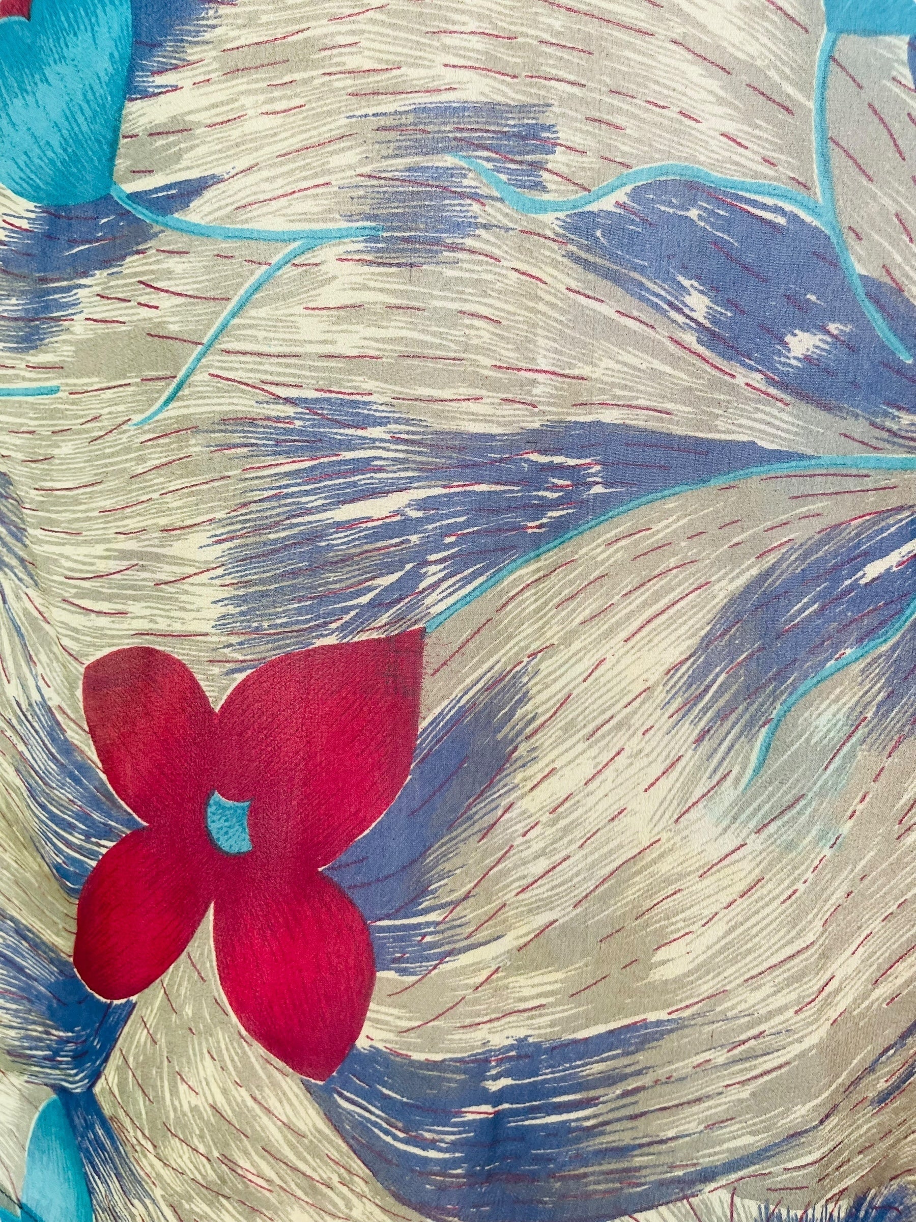 If you look very closely, you will see that the silks in this collection show some of the character of their previous incarnations through the appliqués that have been lovingly applied to bring new life to the fabric. This piece is a reminder that we are part of a collective journey to which we all add a little something.