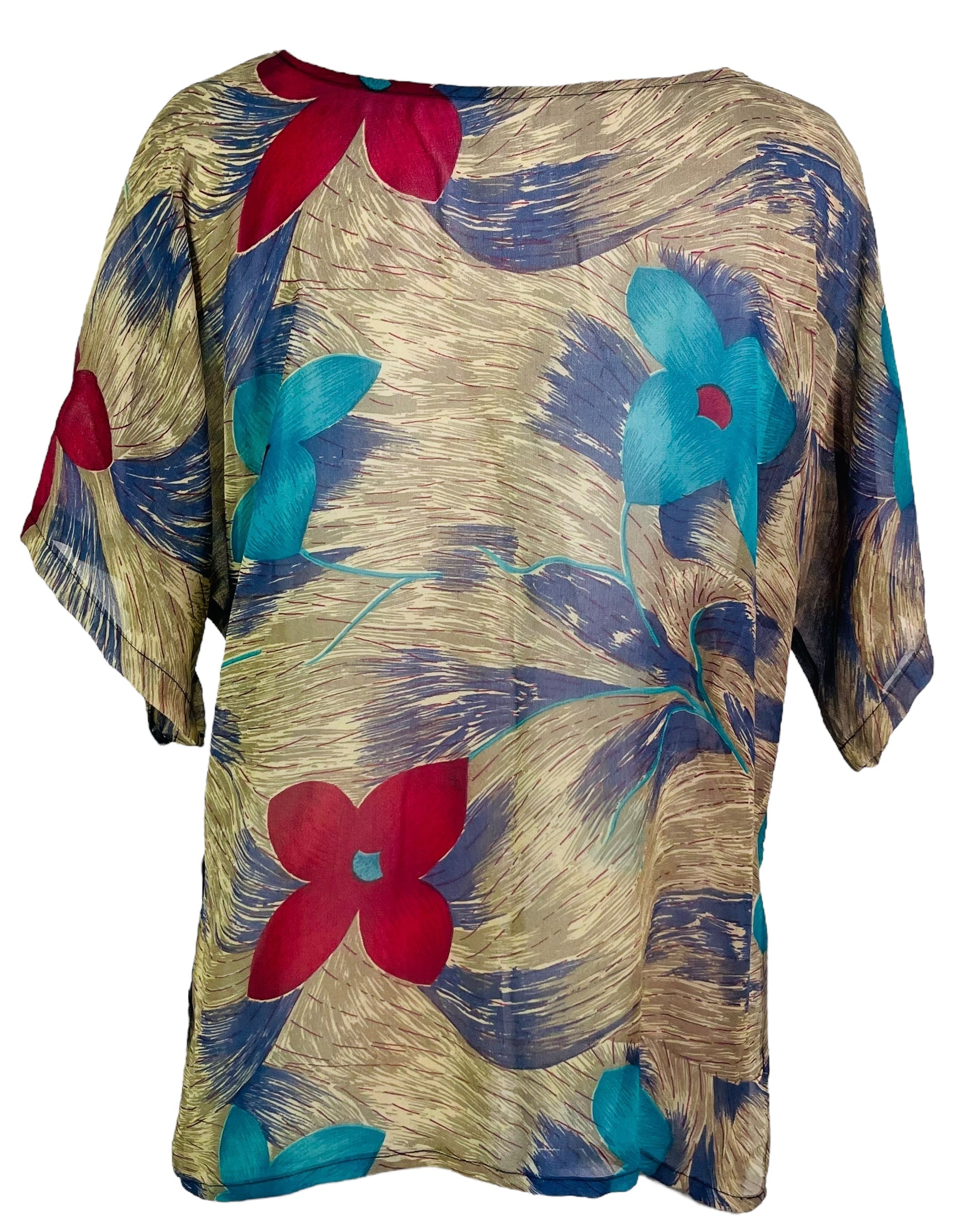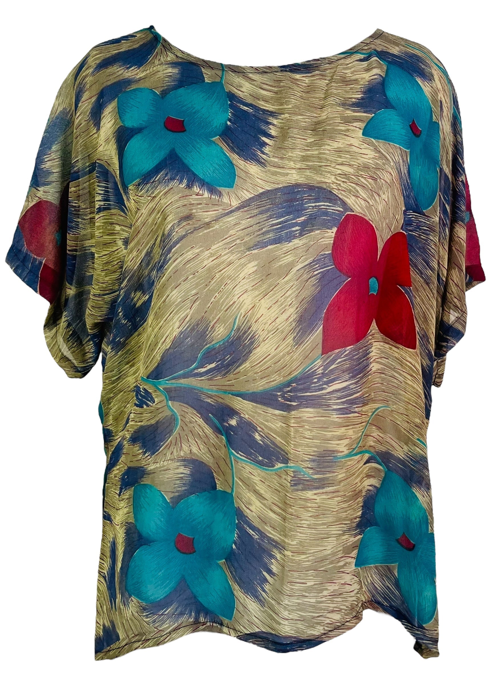 PRG6843 Sheer Avatar Pure Silk Side Slit Top